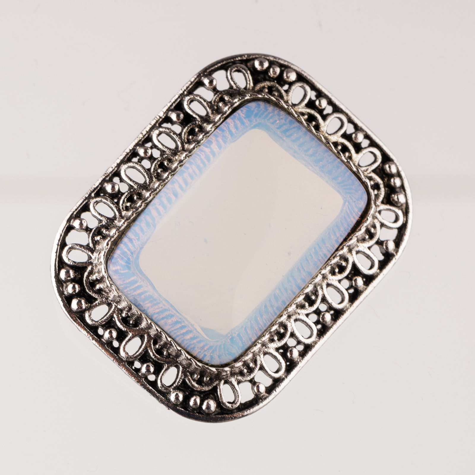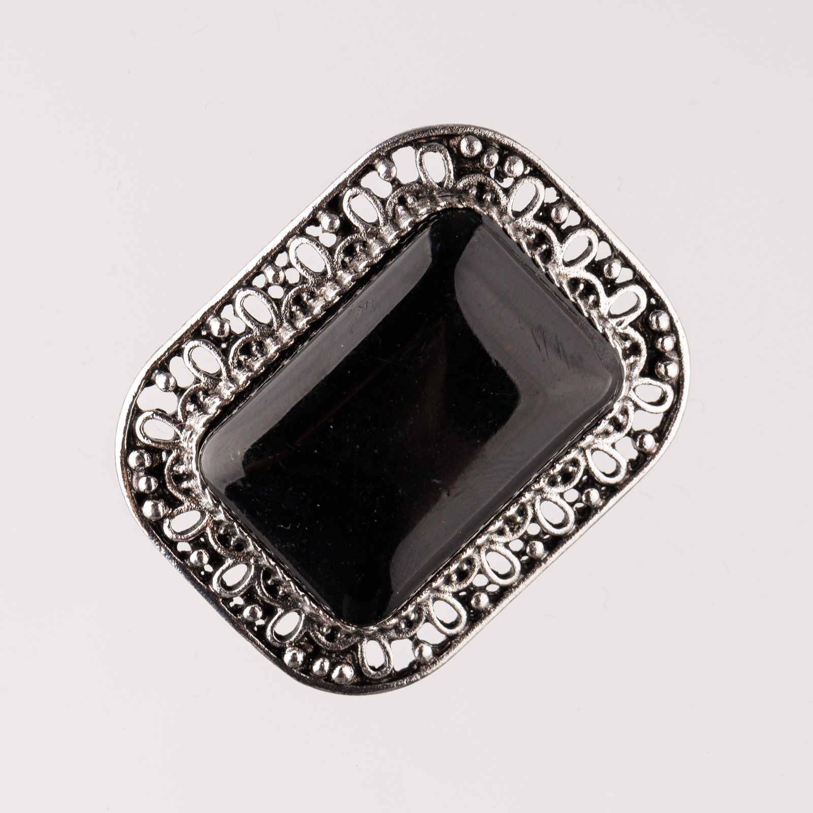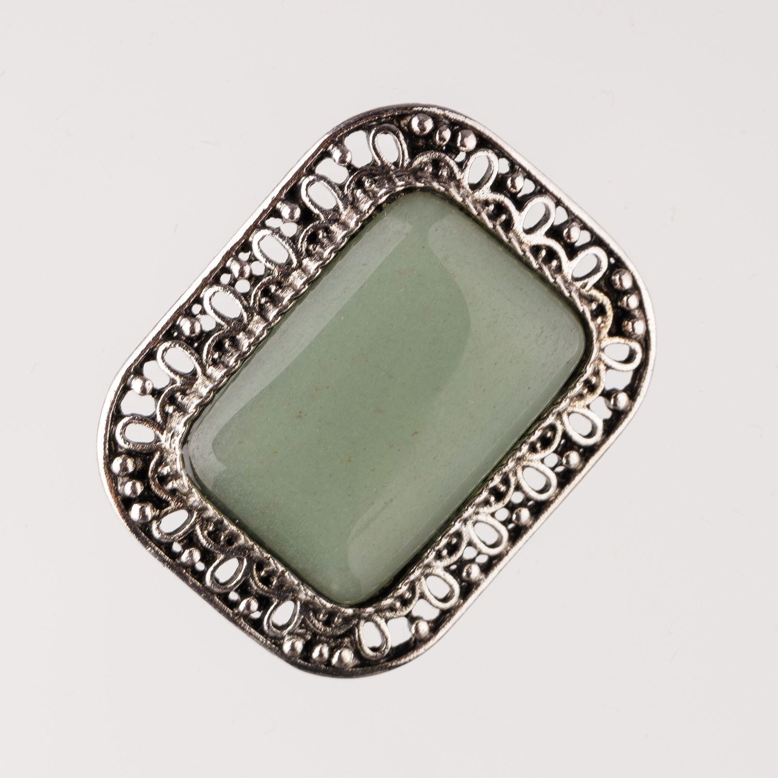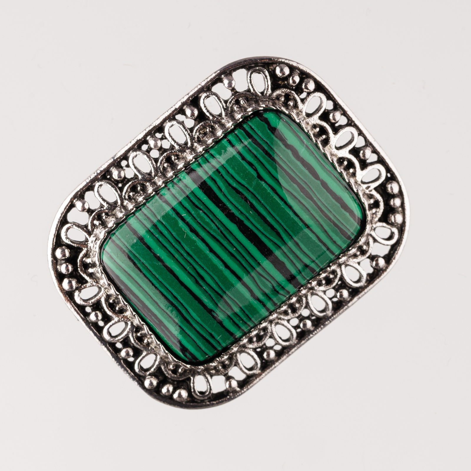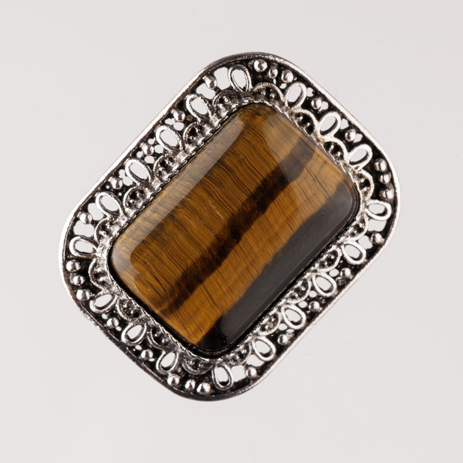 Shopika Brosa metalica argintie, dreptunghi cu piatra naturala de ochi de tigru