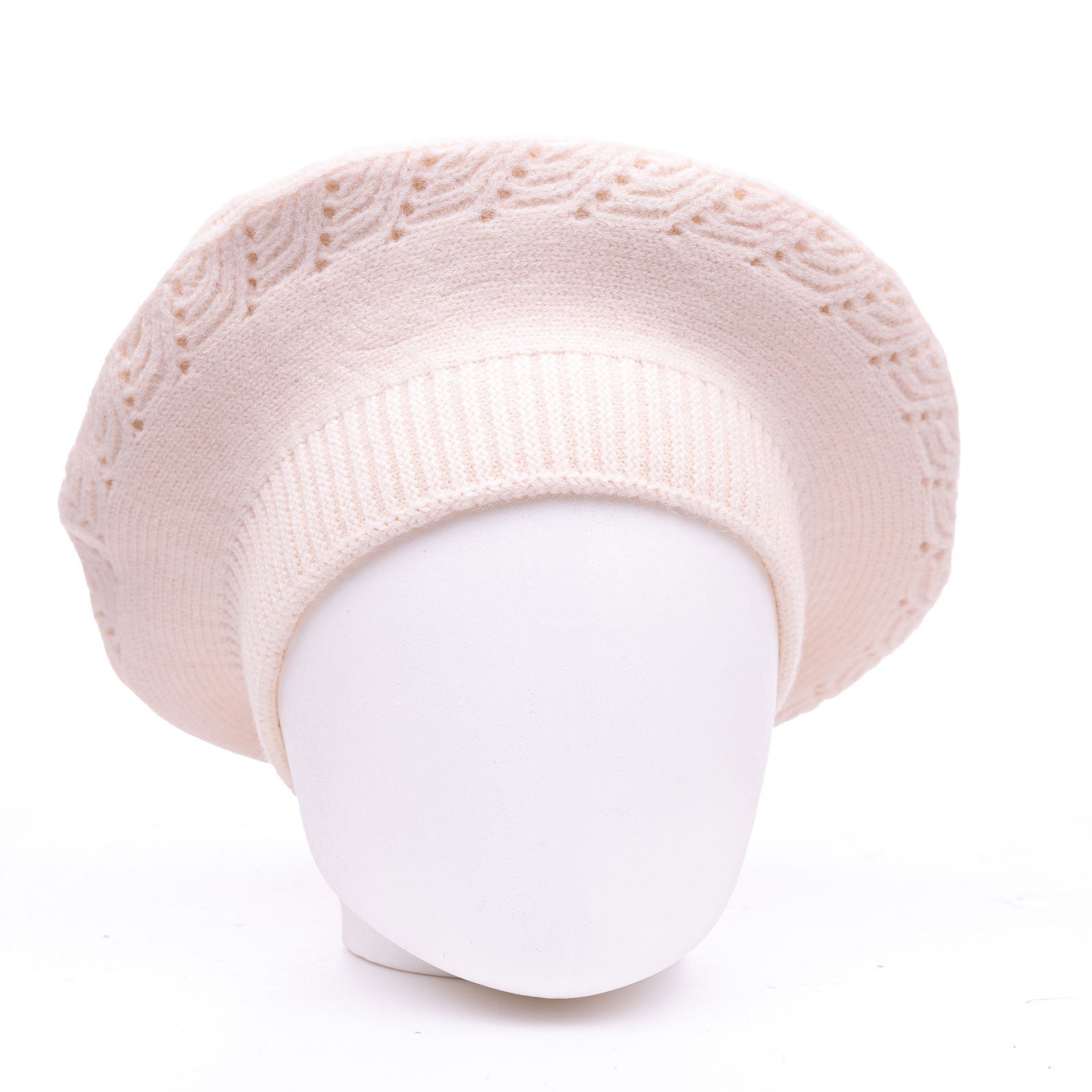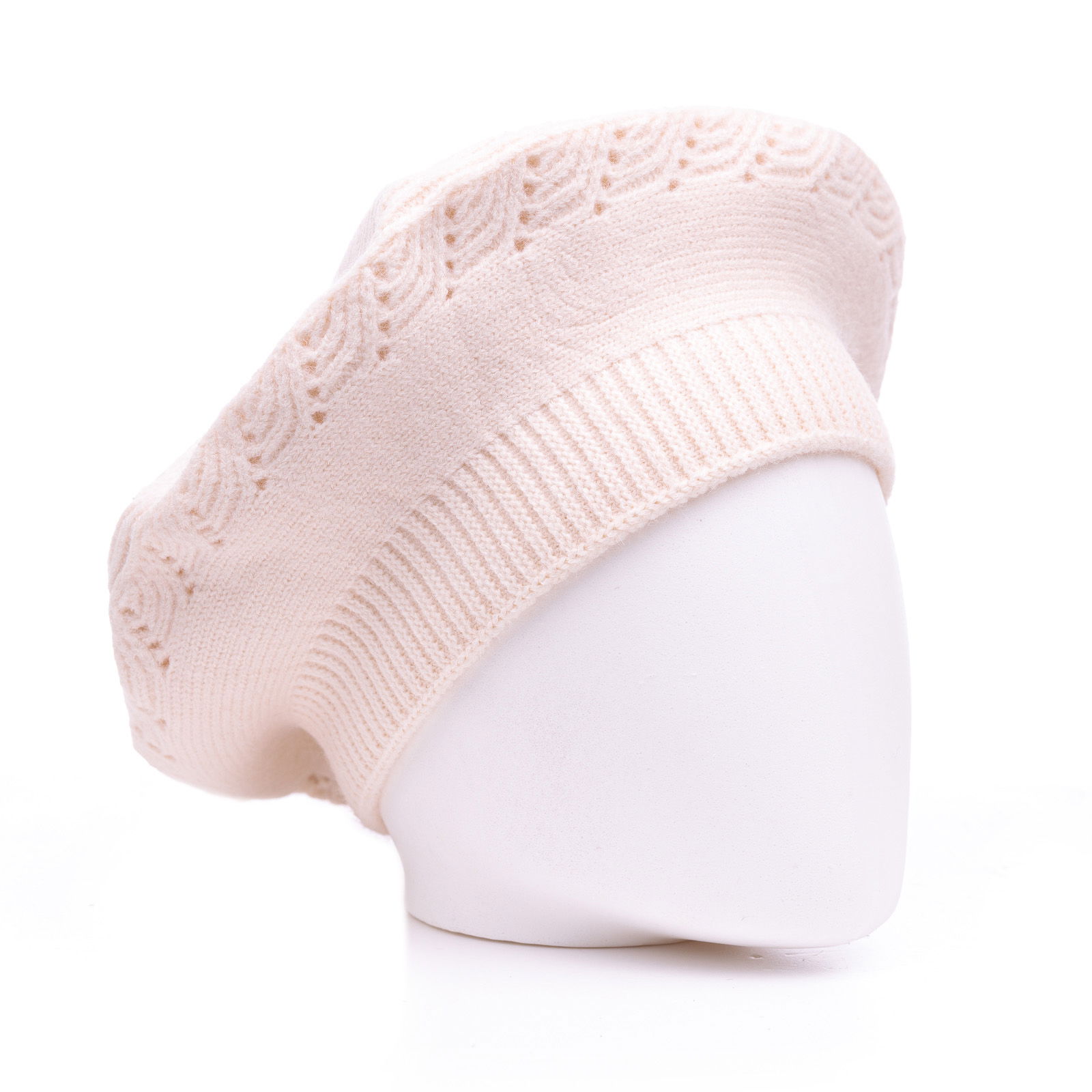 Shopika Bereta alba cu model tricotaj cu bradutii, din lana