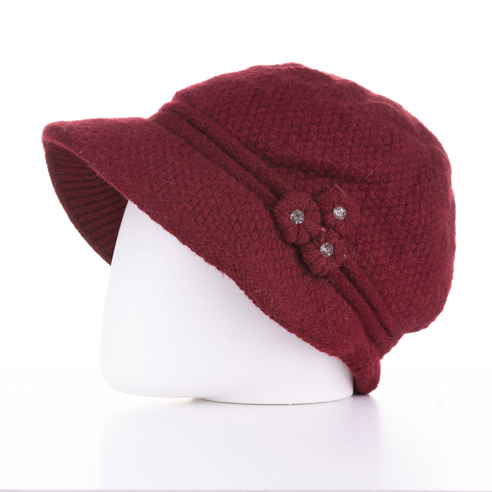 Caciula stil palarie bordo cu bor si decoratiune laterala argintie, captusita in interior