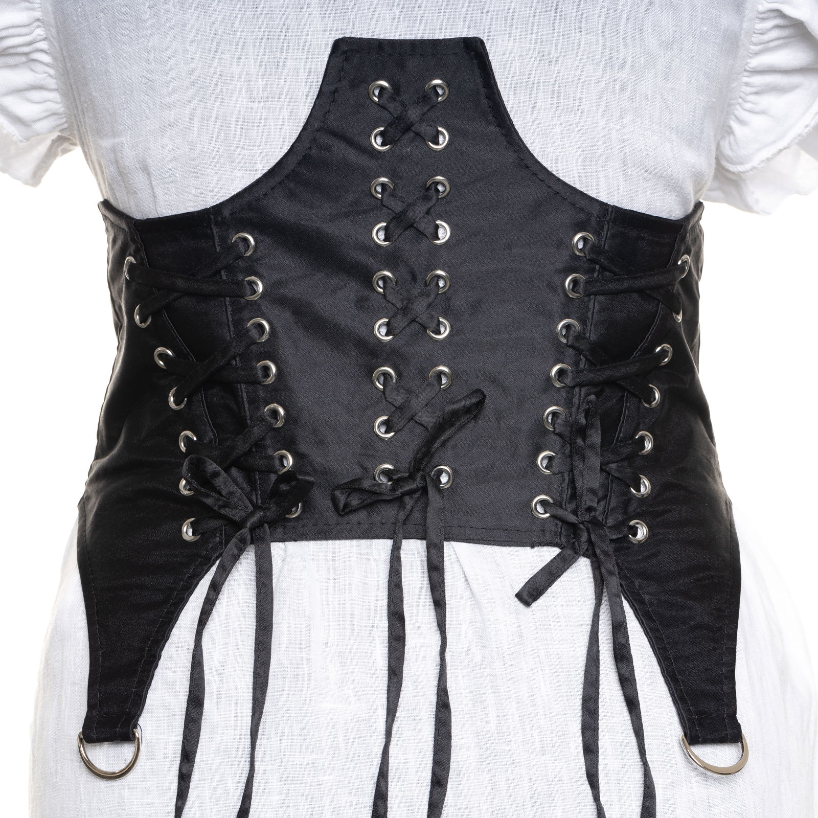 Centura corset lata 20 cm din material textil cu trei randuri de sireturi si capse argintii, elastic lat la spate