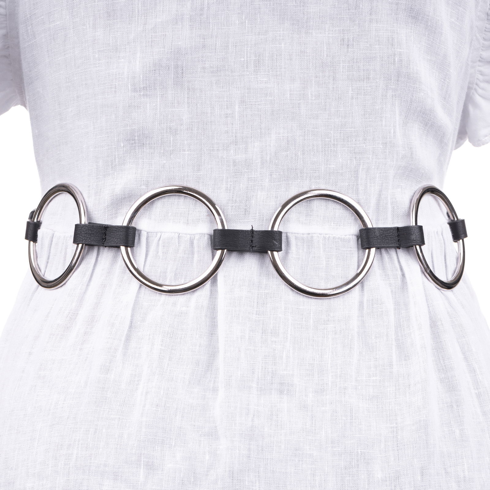 Shopika Curea flexibila cu 4 cercuri metalice argintii de 6 cm cu material elastic negru la spate