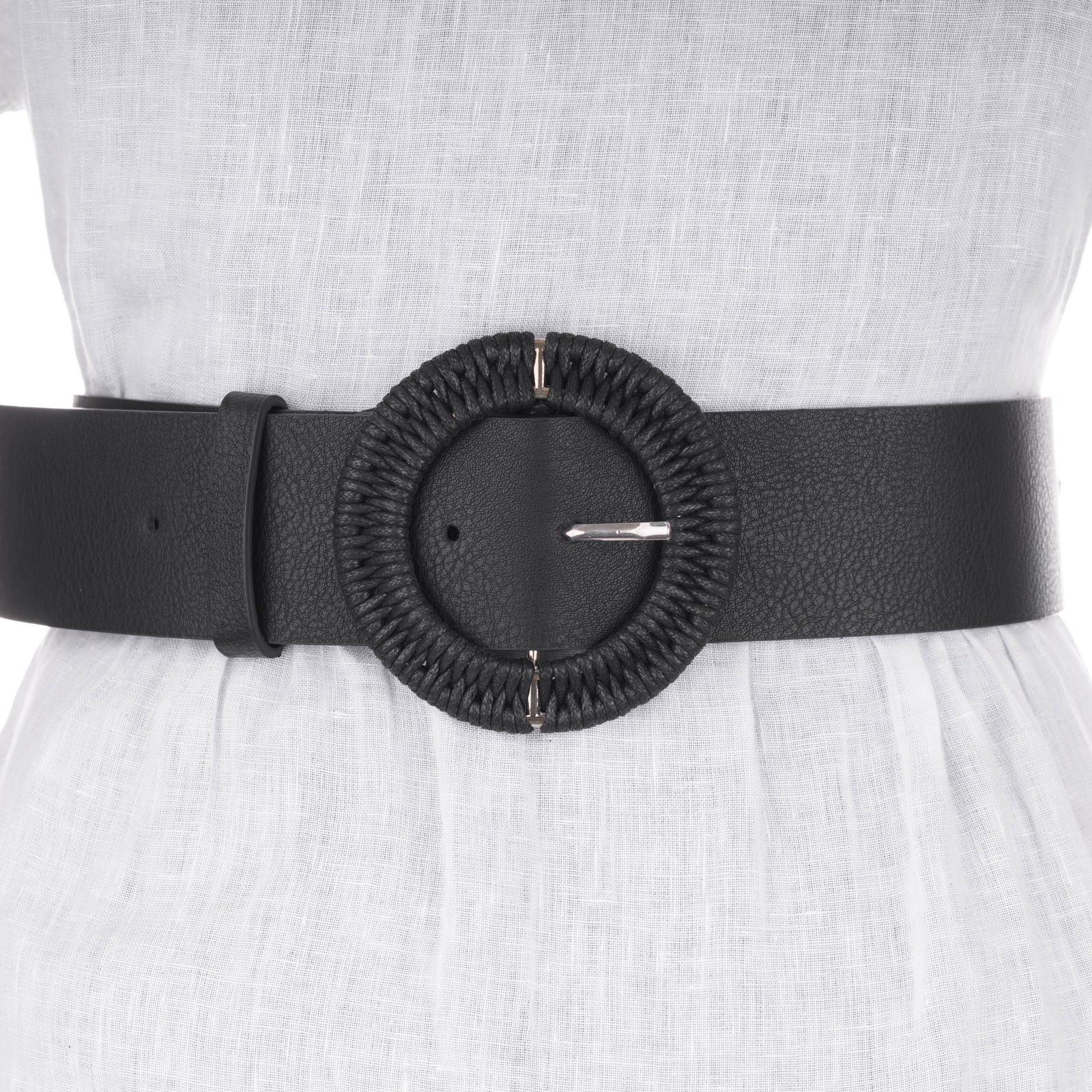 Curea lata neagra de 5 cm, din piele ecologica cu catarama metalica argintie imbracata in impletitura