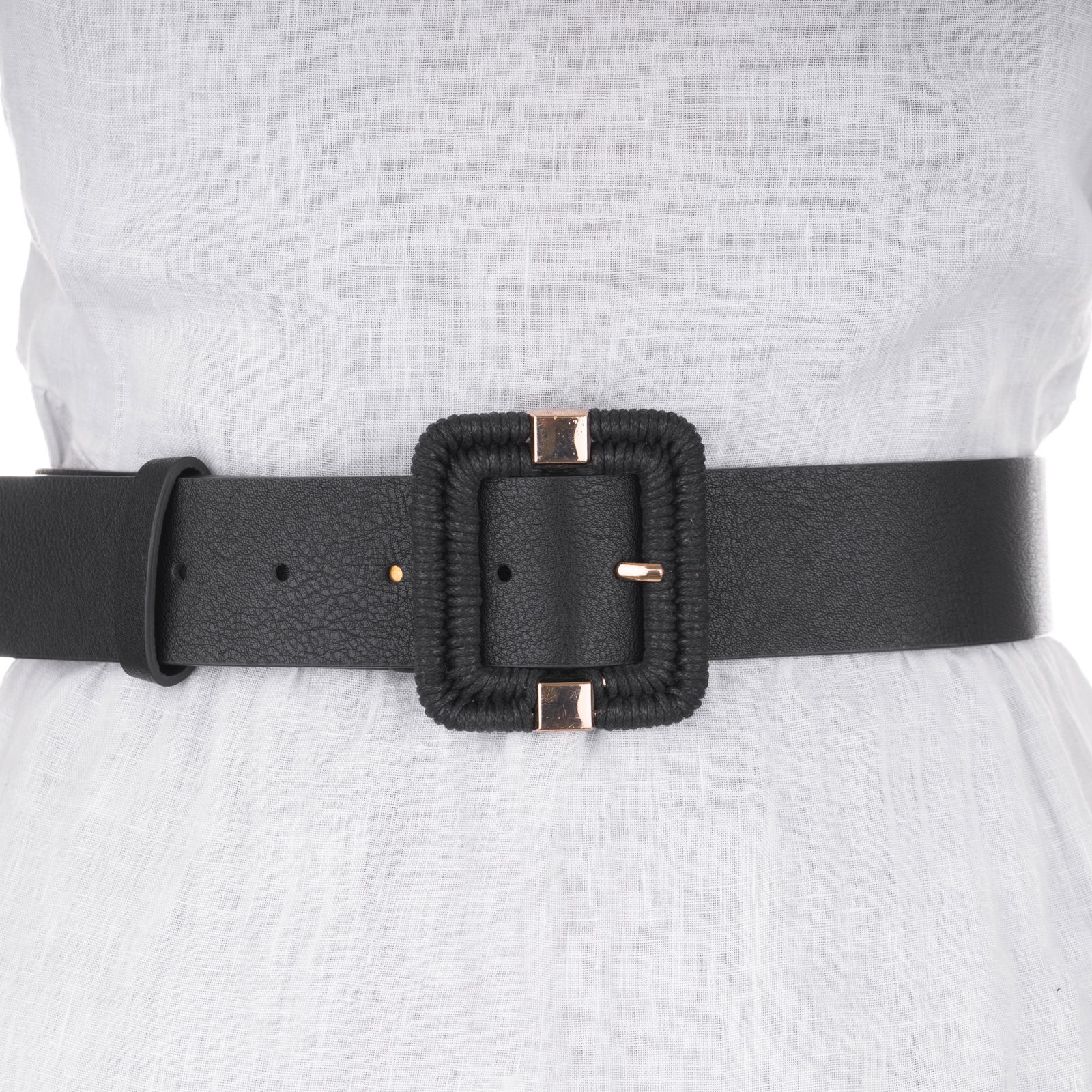 Curea neagra de 4 cm, din piele ecologica cu catarama metalica rectangulara aurie imbracata in impletitura
