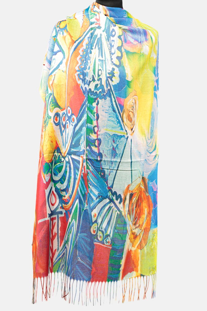 Shopika Esarfa cashmere cu doua fete imprimata cu reproducere colorata intens a lui Picasso
