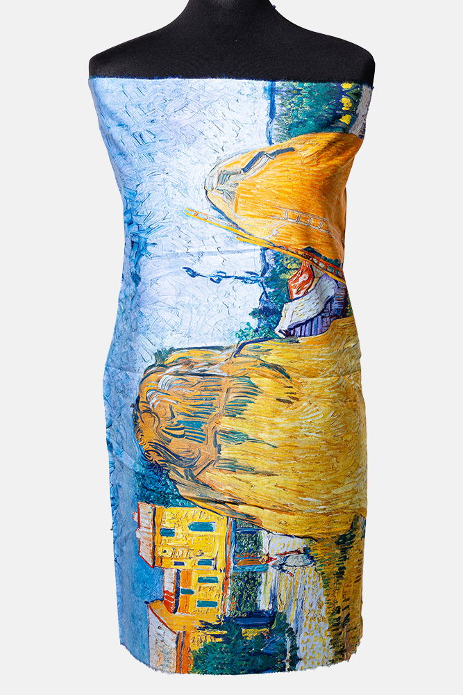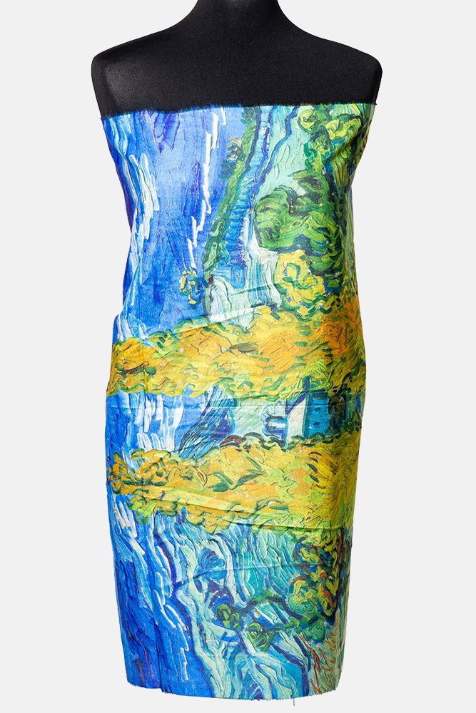 Shopika Esarfa cashmere cu doua fete imprimata cu un peisaj campenesc cu capite de fan