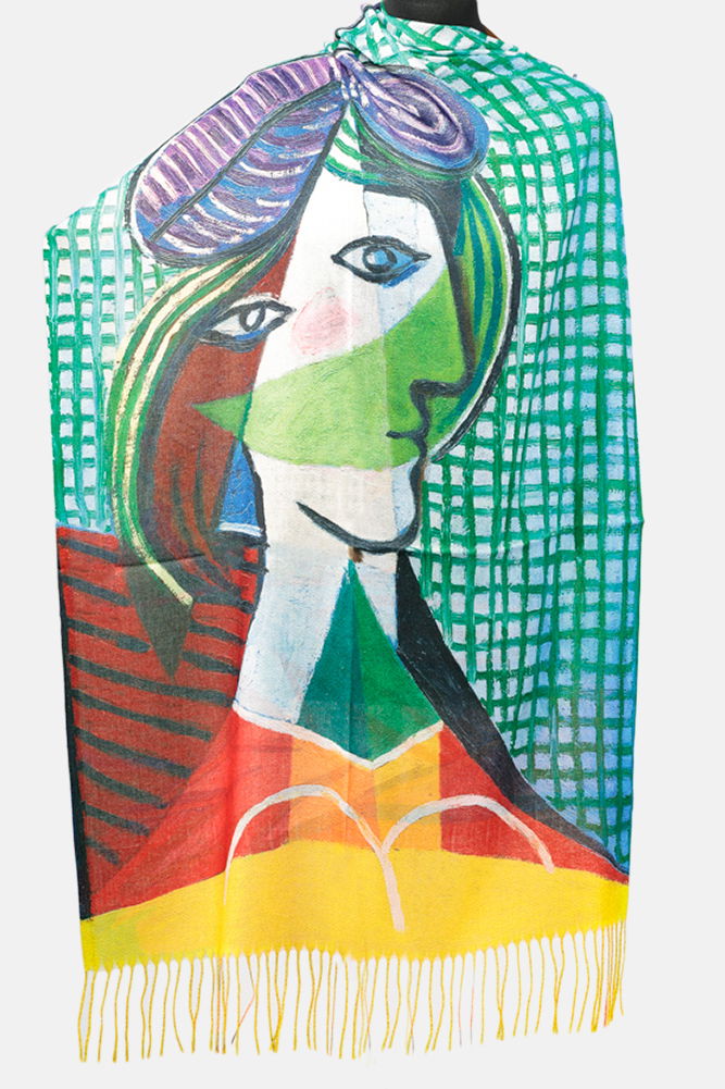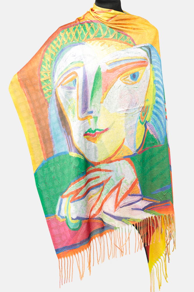 Shopika Esarfa cashmere cu fir de lurex, doua fete imprimata cu reproducere suprarealista dupa Picasso
