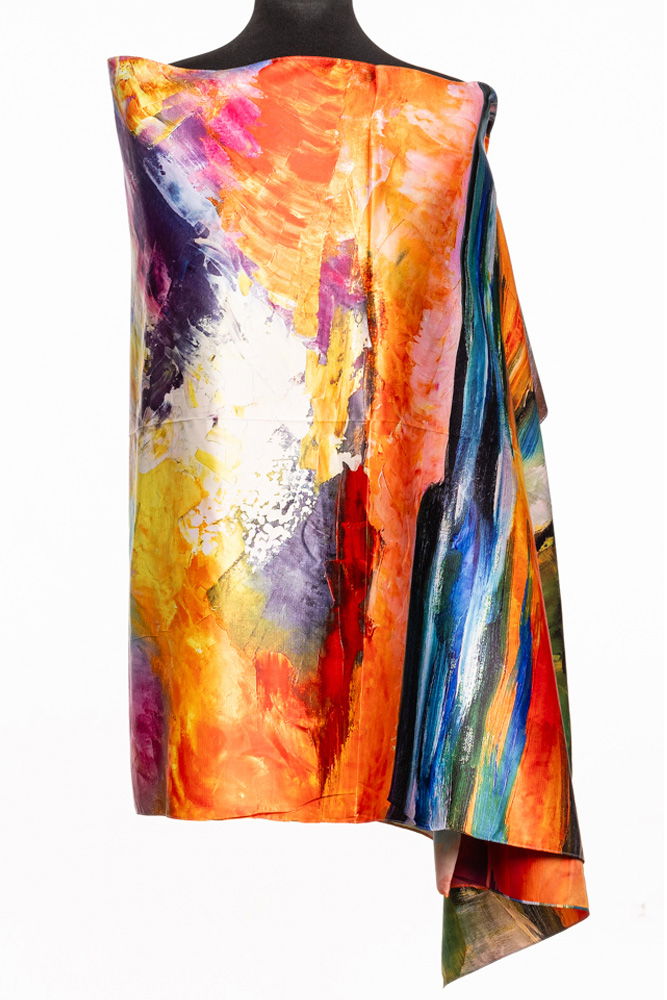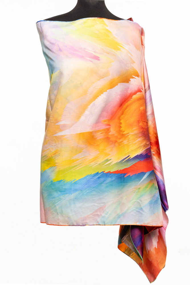 Shopika Esarfa cu doua fete, din matase, cu imprimeu pictural multicolor