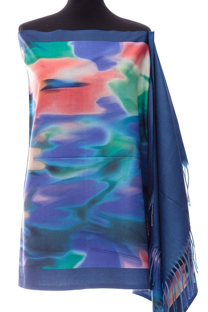 Shopika Esarfa din casmir cu fata dubla acuarela-bleumarin