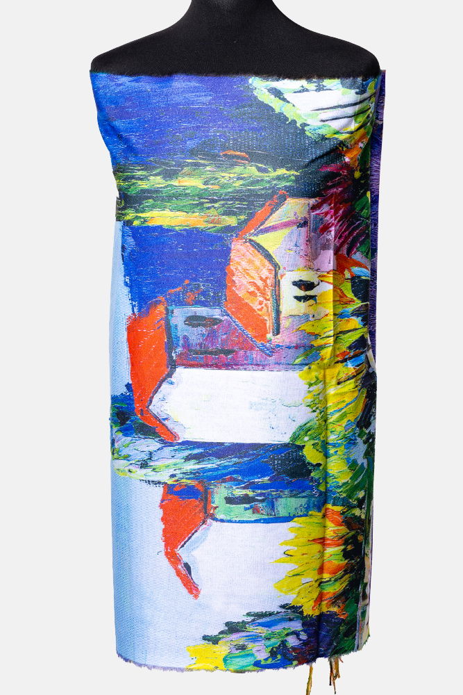 Shopika Esarfa matase doua fete imprimata dupa reproducerea unui tablou cu campuri de lavanda