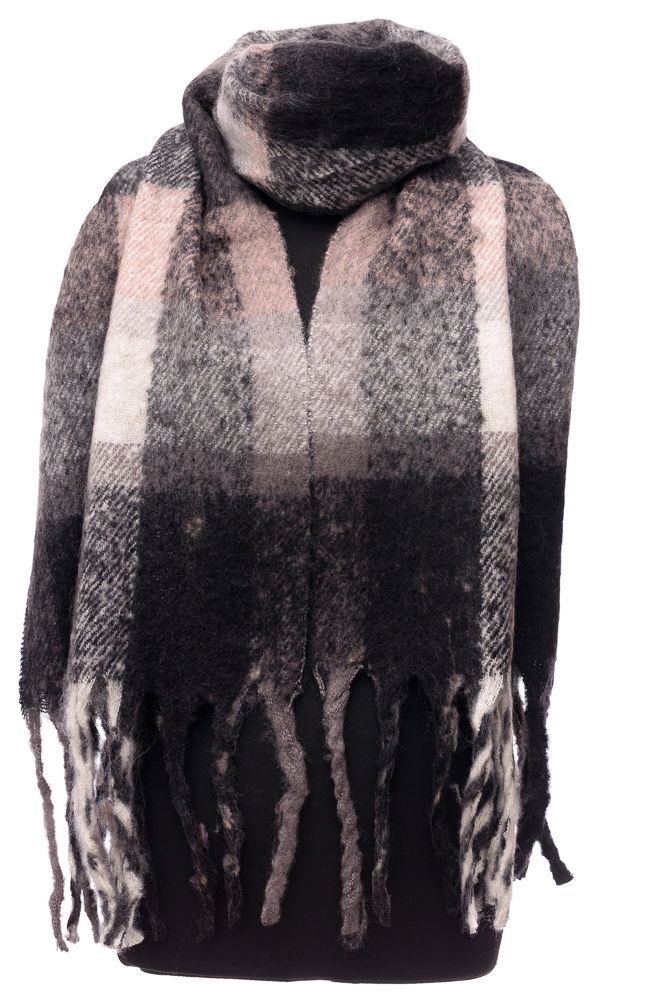 Fular cu imprimeu cu carouri in nuante de alb, negru si roz pal