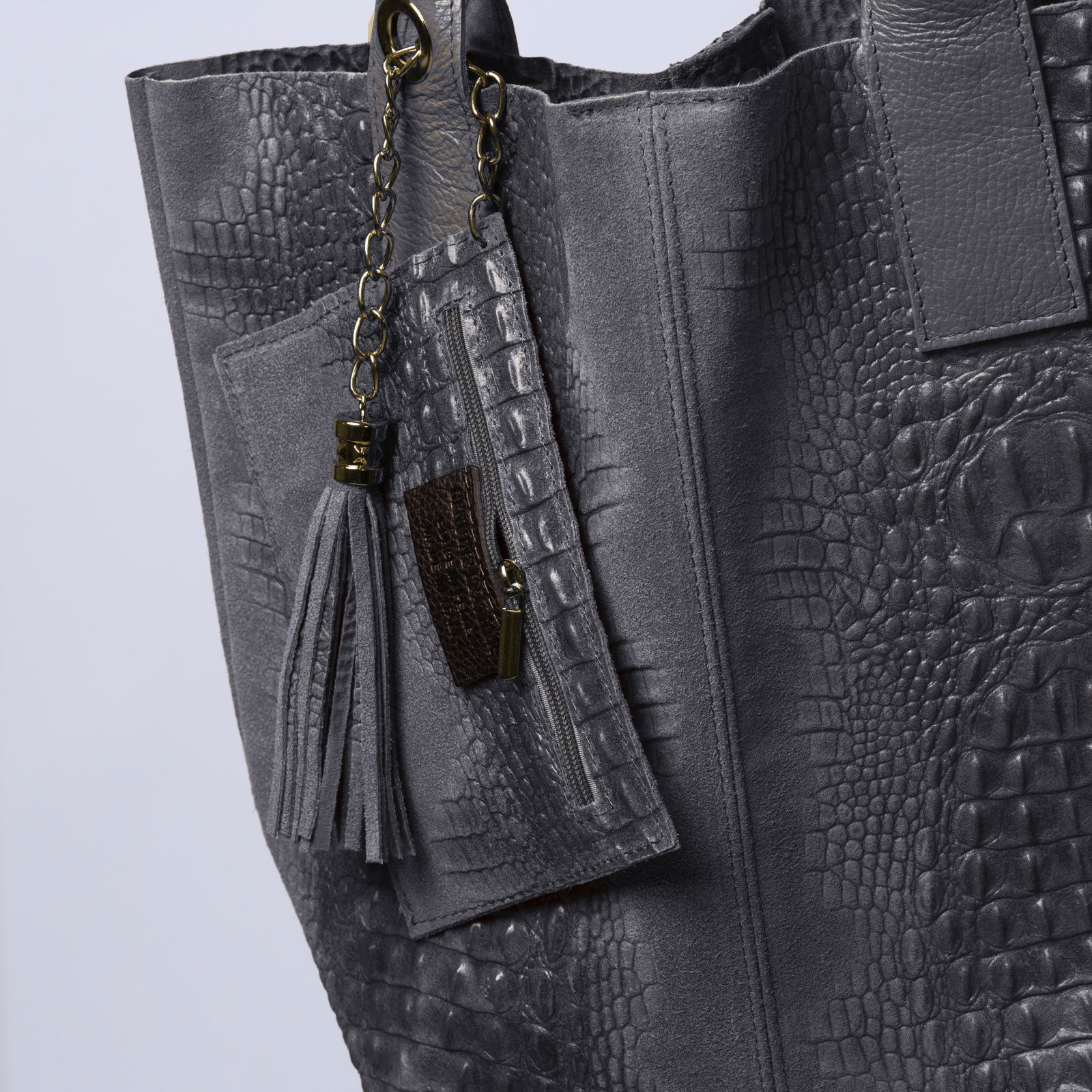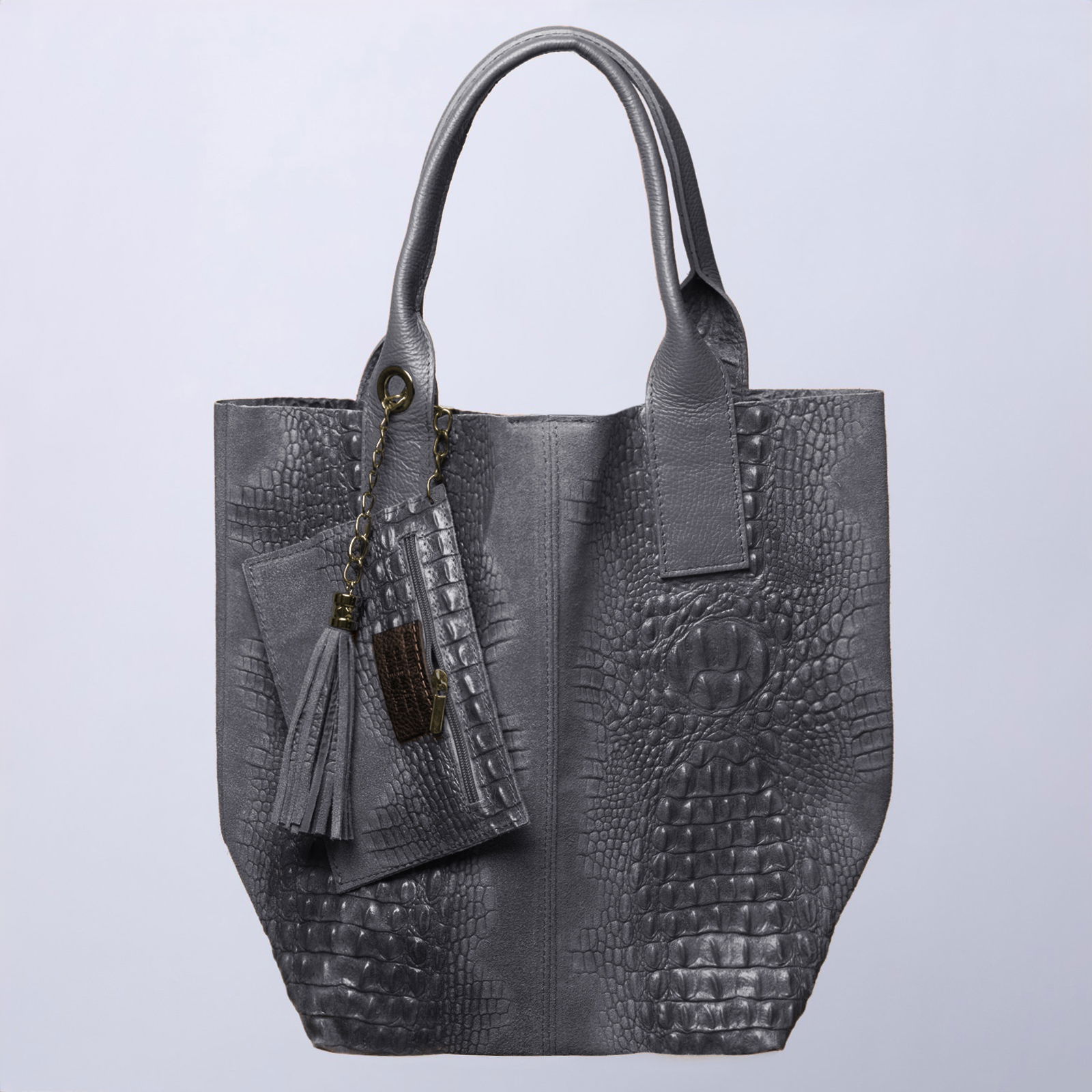 Shopika Geanta shopper din piele intoarsa naturala, gri inchis