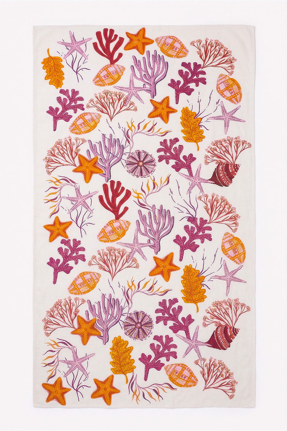 Shopika Esarfa mare dreptunghiulara tip pareo, cu imprimeu marin, exotic fucsia si portocaliu pe fond alb, din bumbac
