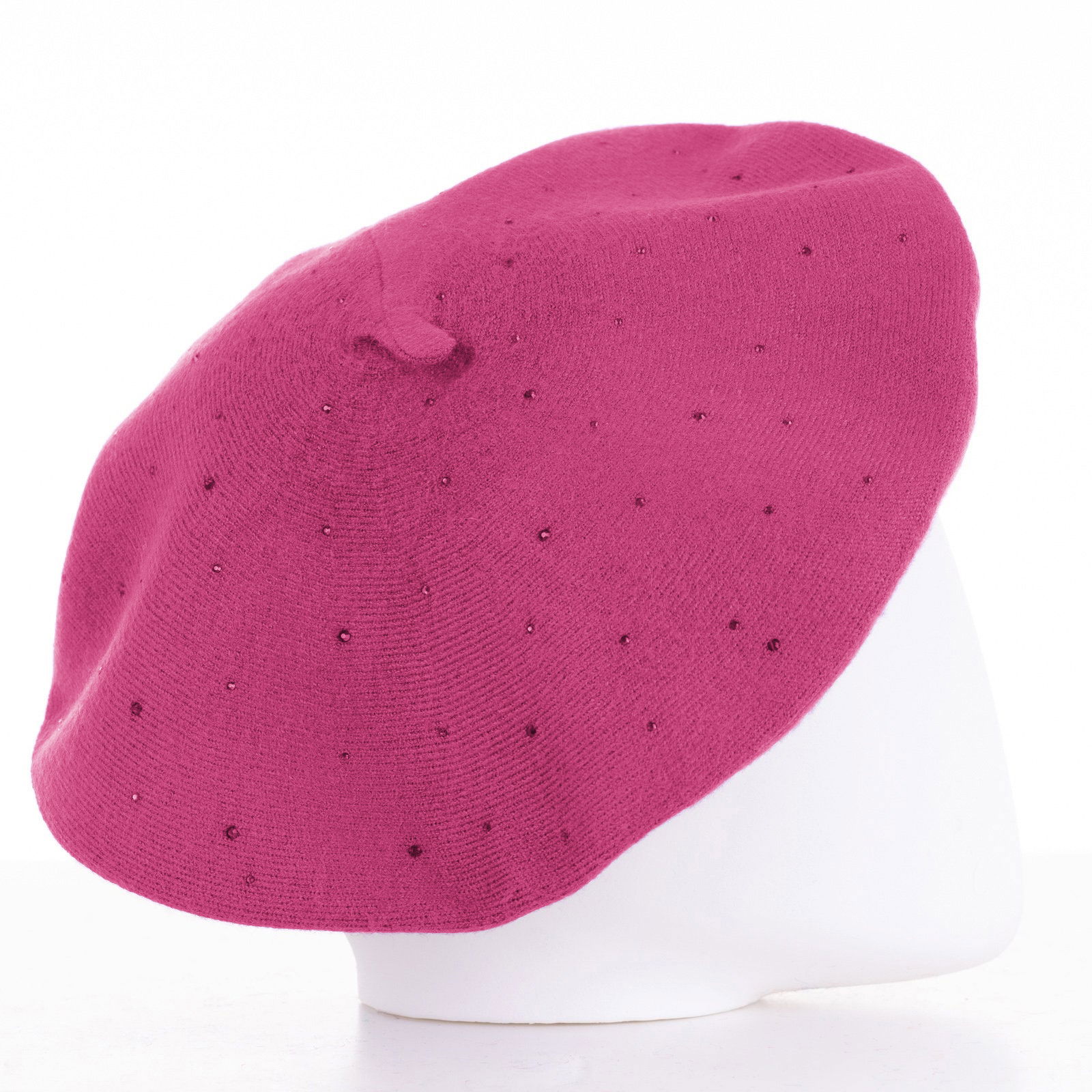 Shopika Bereta magenta clasica, cu strasuri foarte fine aplicate pe toata suprafata, din bumbac si lana