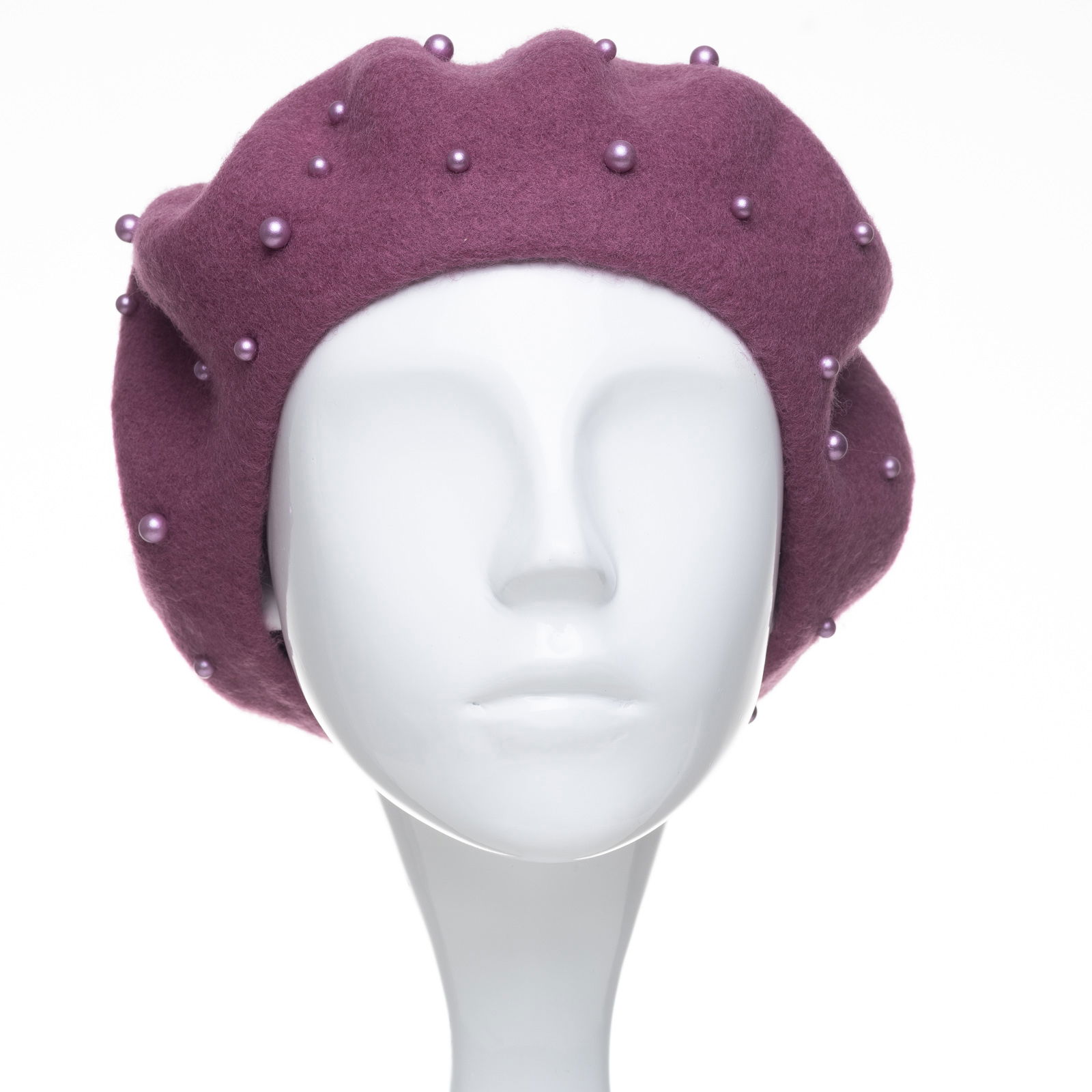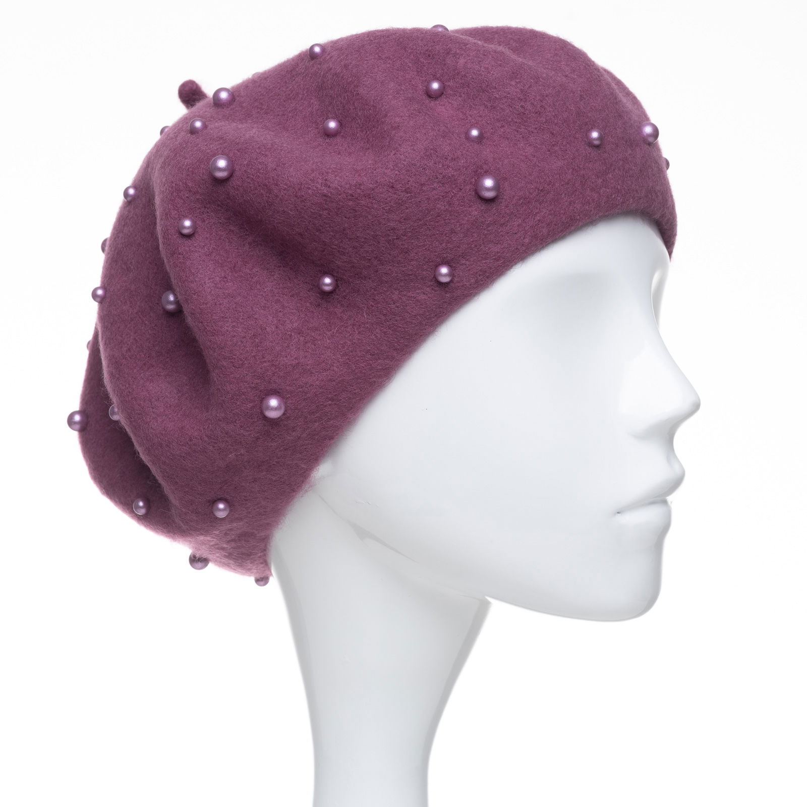 Shopika Bereta mov zmeura, cu perle fine aplicate pe toata suprafata, din lana