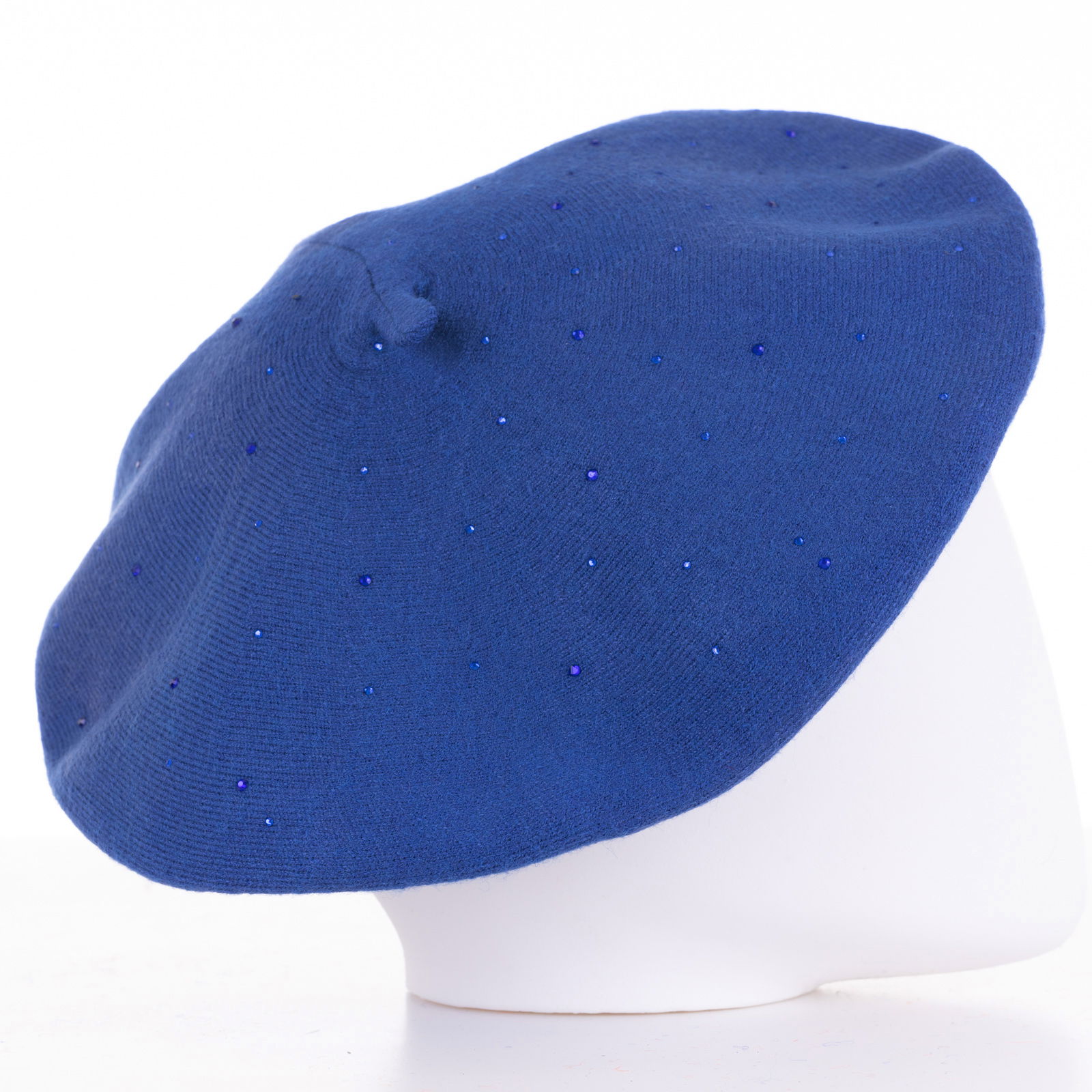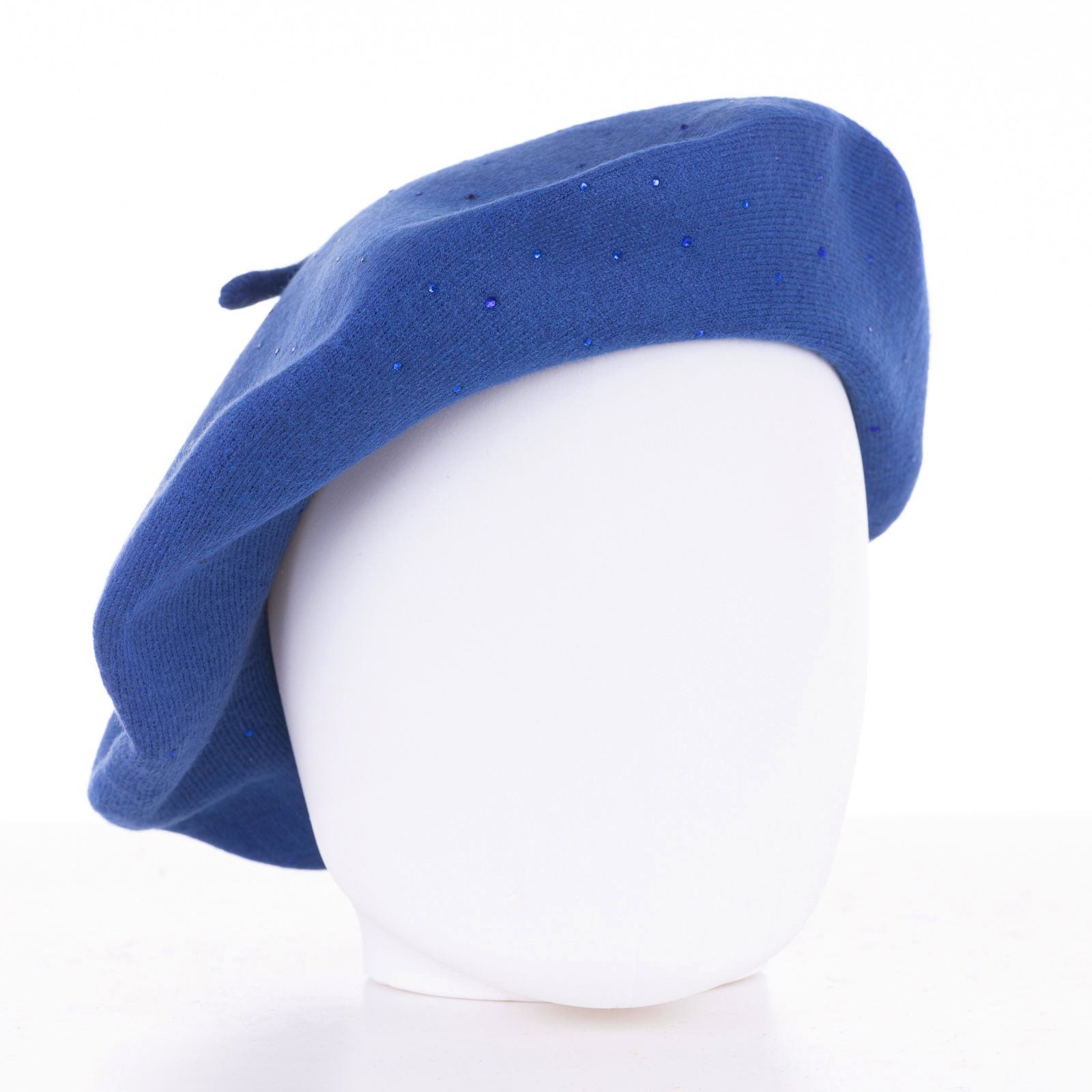 Shopika Bereta albastru electric clasica, cu strasuri foarte fine aplicate pe toata suprafata, din bumbac si lana