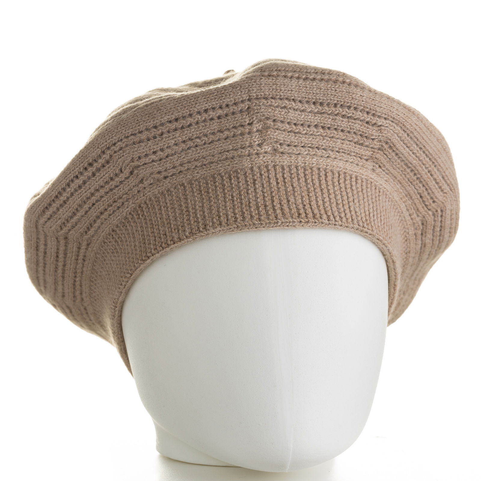 Shopika Bereta bej cu model gen tricotaj cu cercuri concentrice, din lana