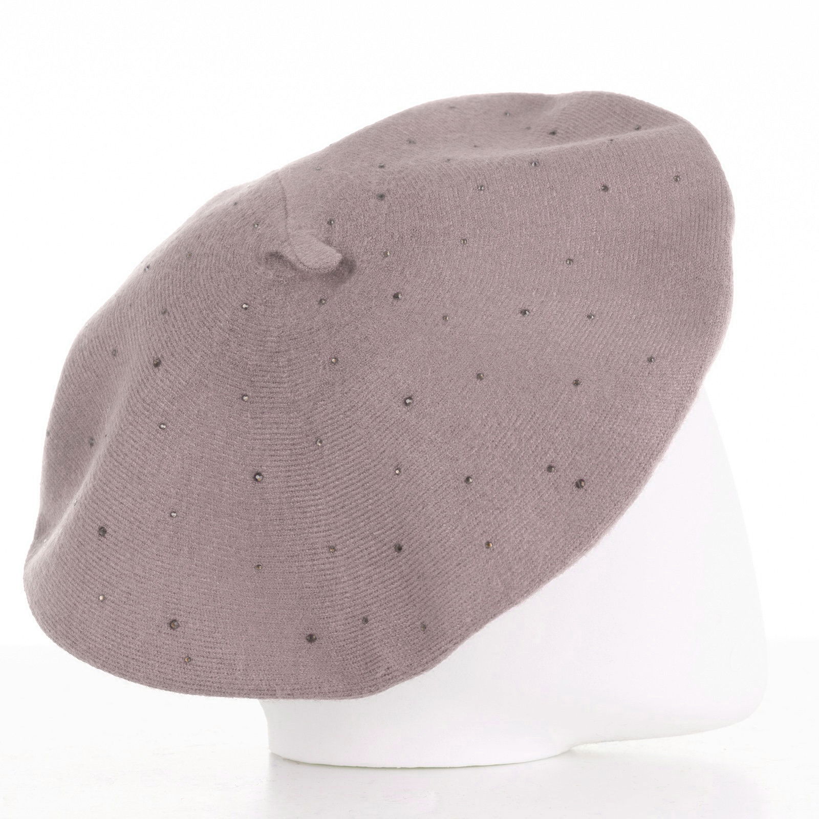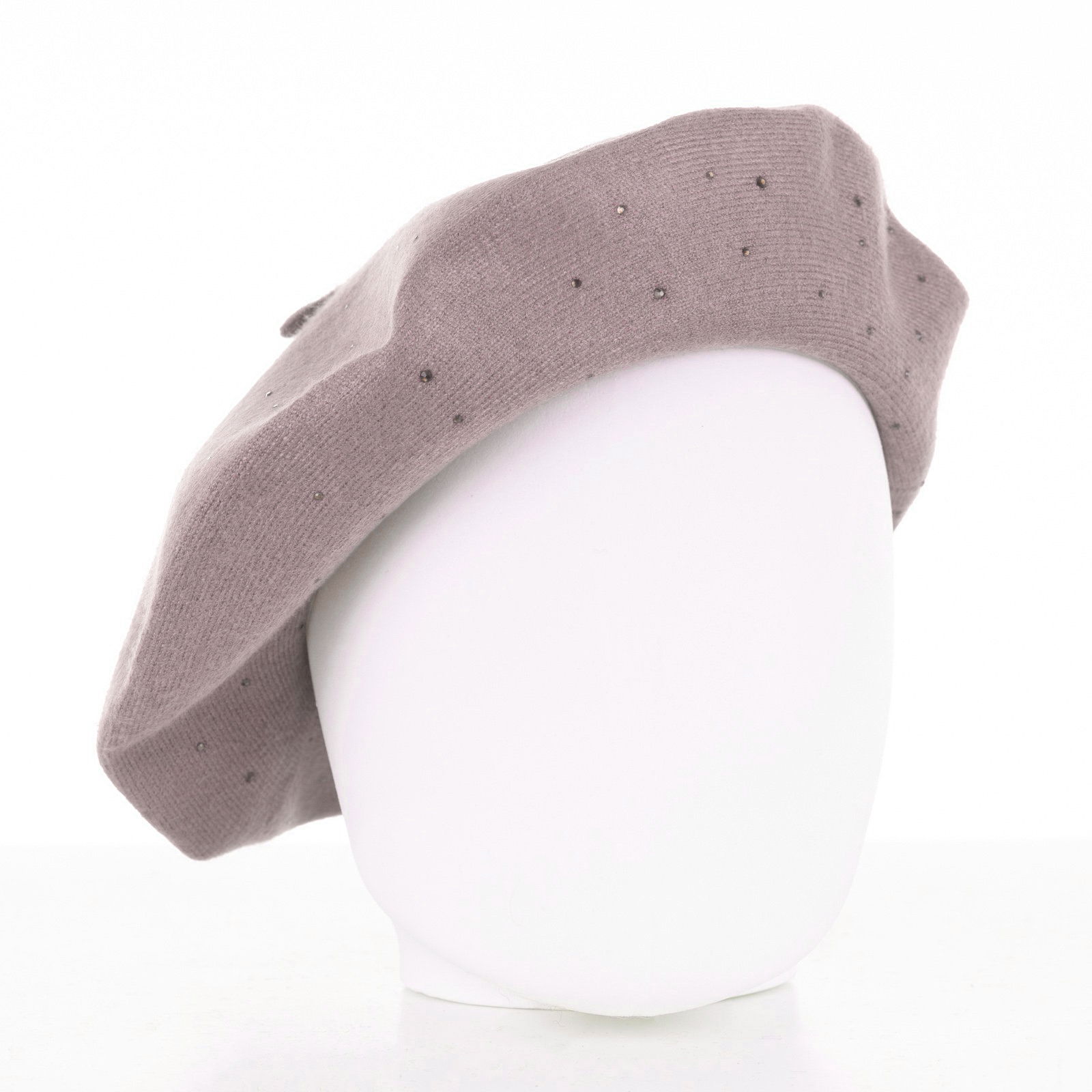 Shopika Bereta bej inchis clasica, cu strasuri foarte fine aplicate pe toata suprafata, din bumbac si lana