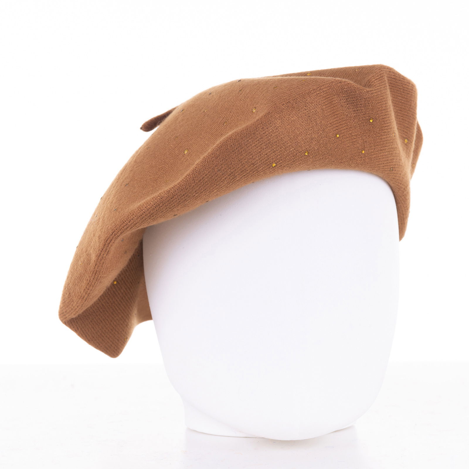 Shopika Bereta camel clasica, cu strasuri foarte fine aplicate pe toata suprafata, din bumbac si lana