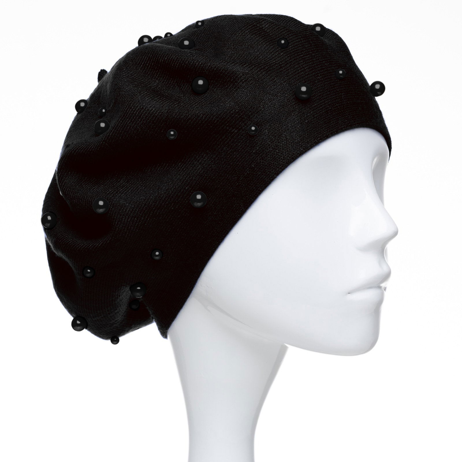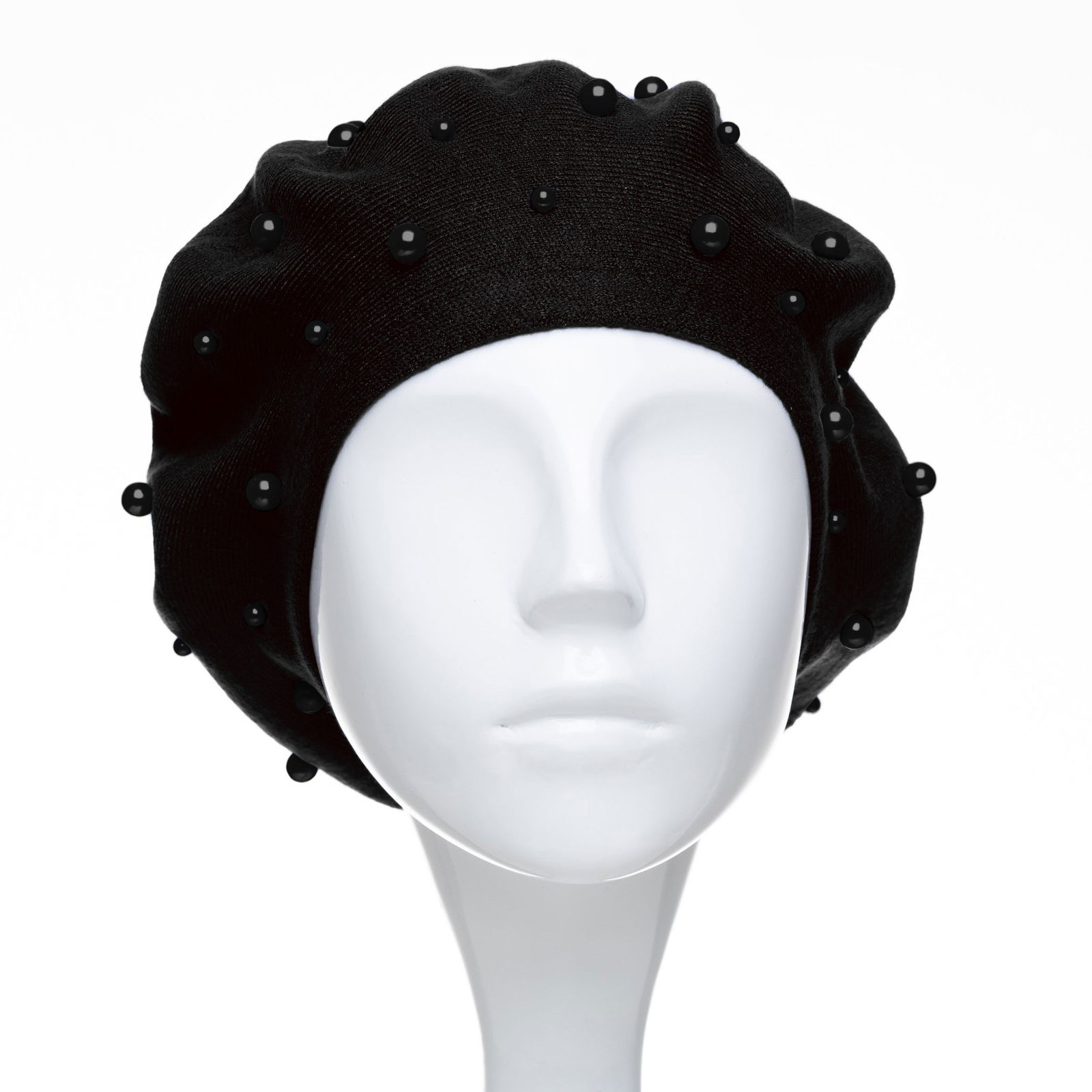 Shopika Bereta neagra, cu perle fine negre aplicate pe toata suprafata, din bumbac si lana