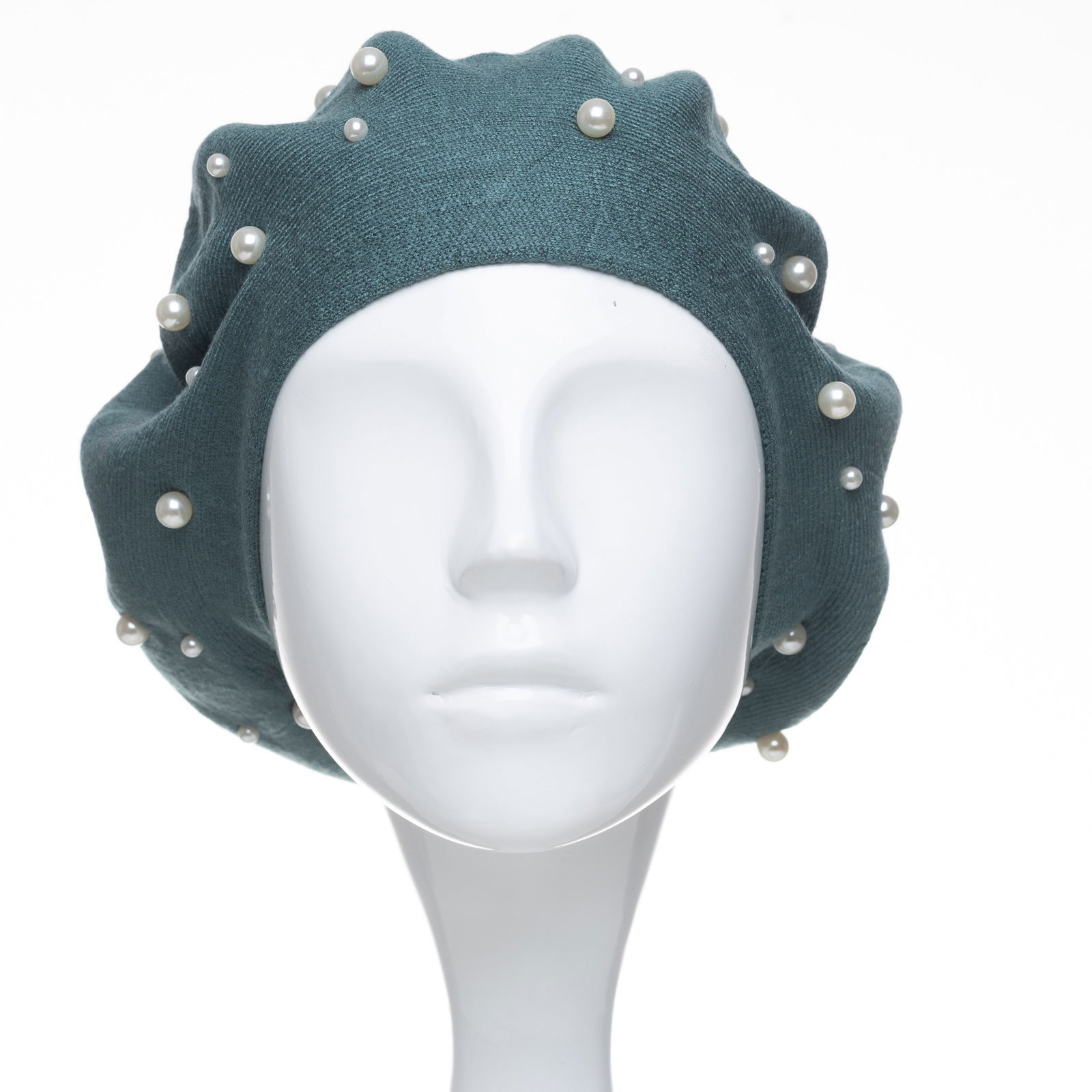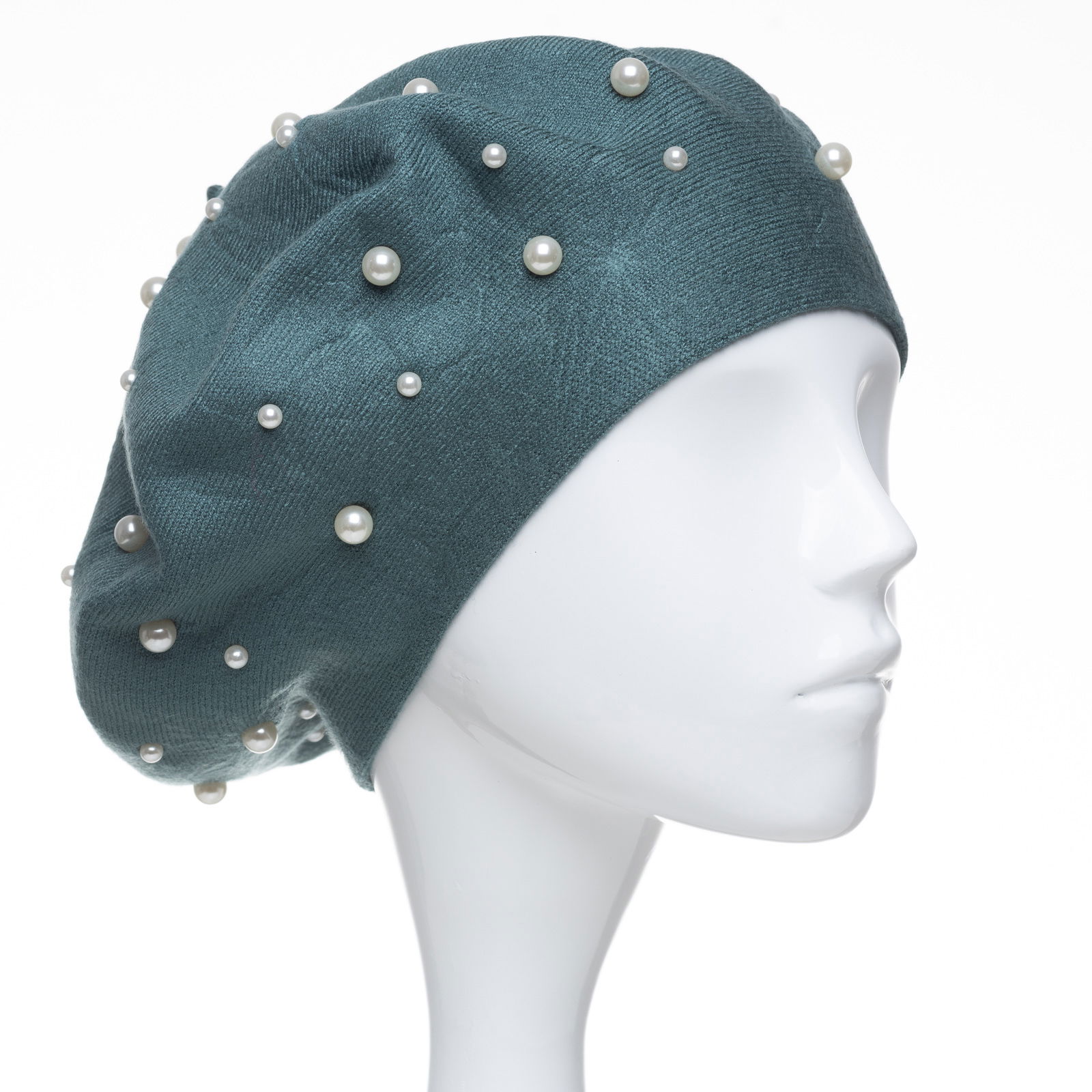 Shopika Bereta verde prafuit clasica, cu perle fine aplicate pe toata suprafata, din bumbac si lana