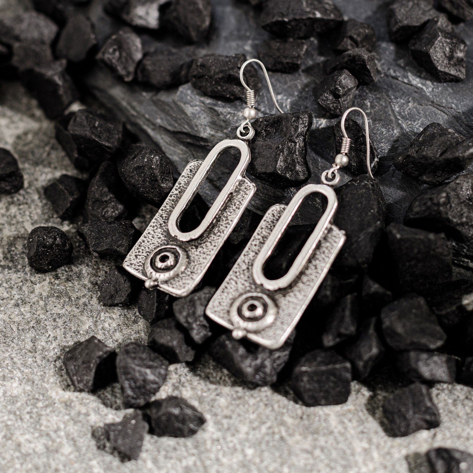 Shopika Cercei cu forma rectangulara abstracta, din zamac