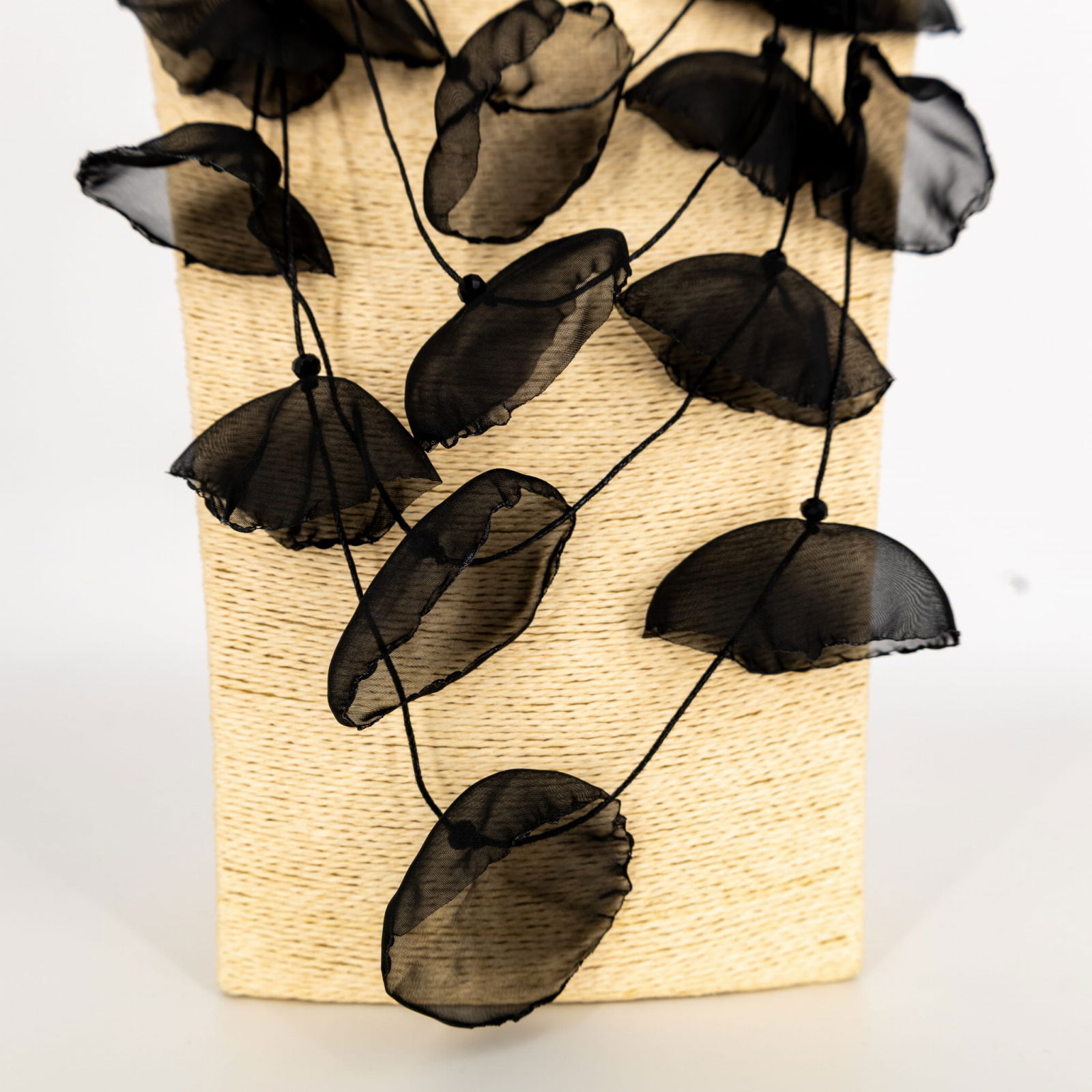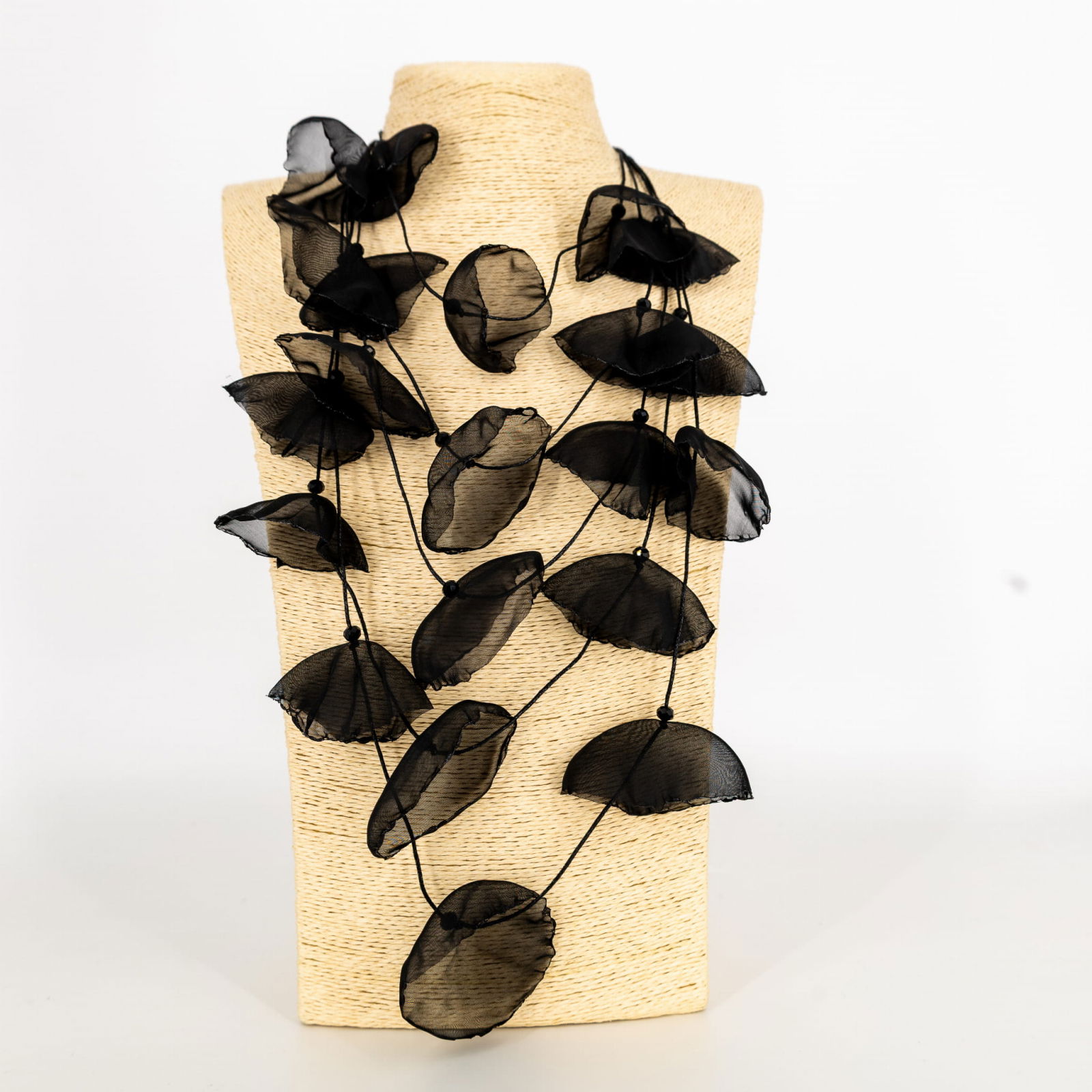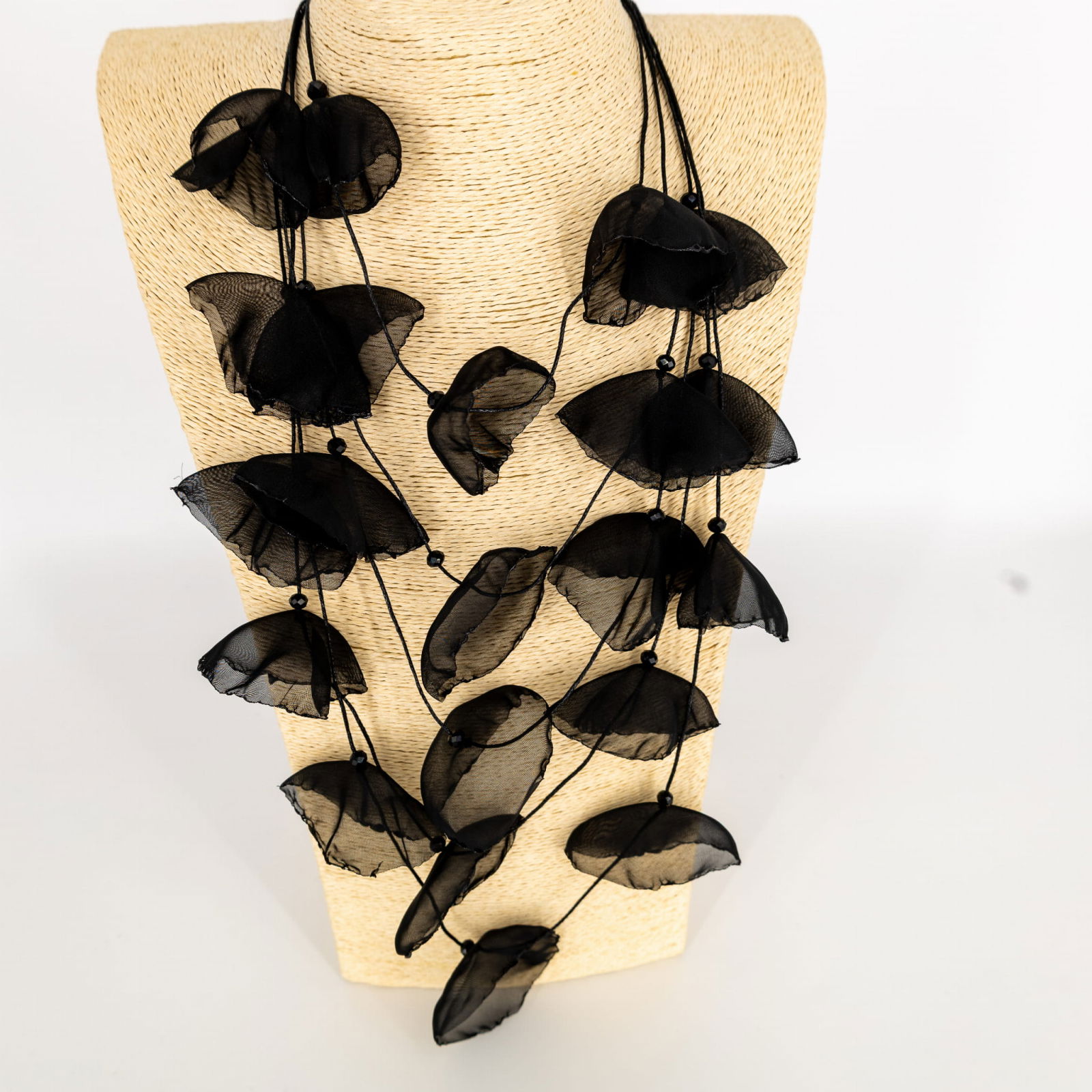 Un colier care domină vizual prin prezență și culoare. Detaliile lucioase completează compoziția și aduc profunzime, fără a aglomera. Este un accesoriu ideal pentru rochii, sacouri minimaliste sau pulovere fine, atunci când vrei să adaugi un accent couture, fără compromisuri.