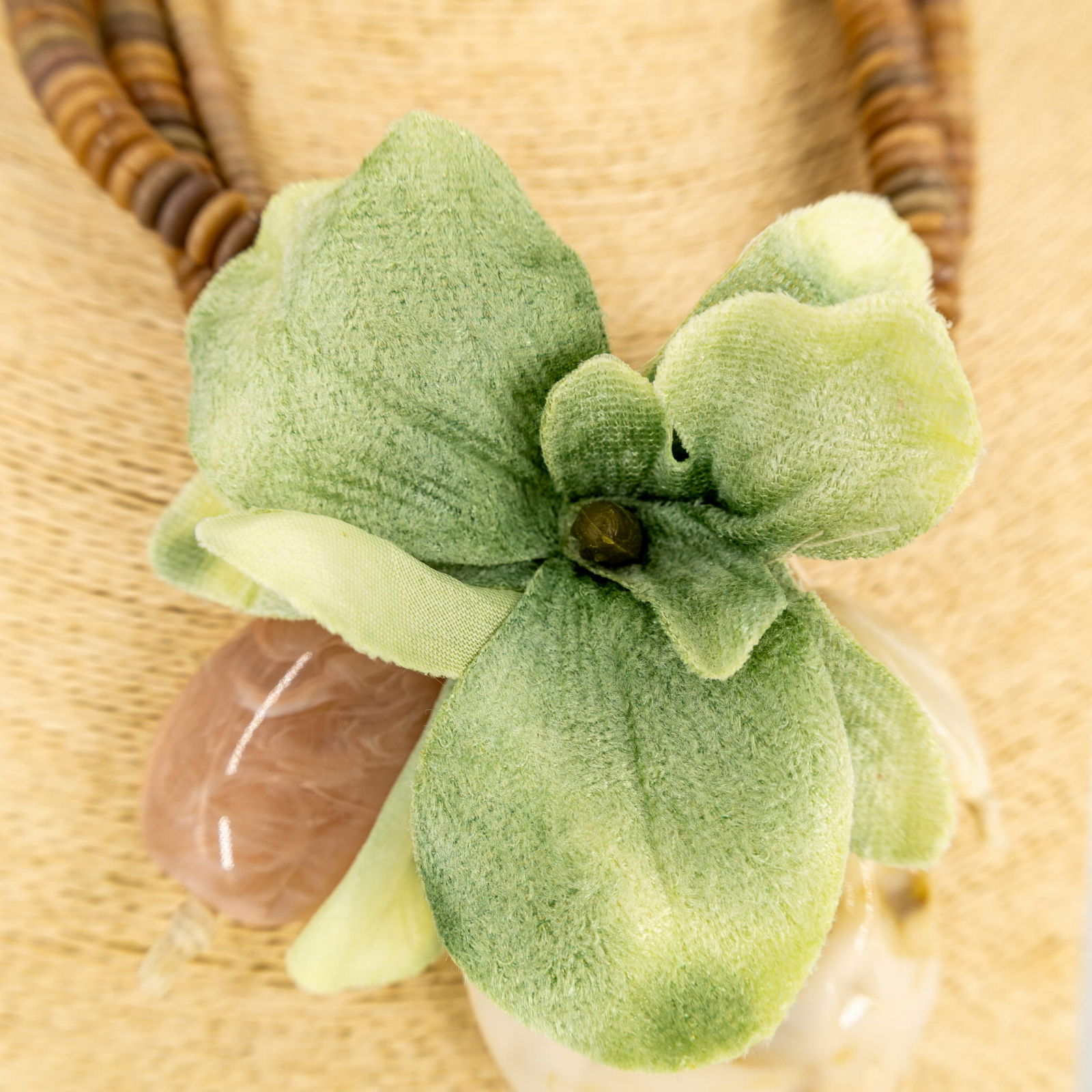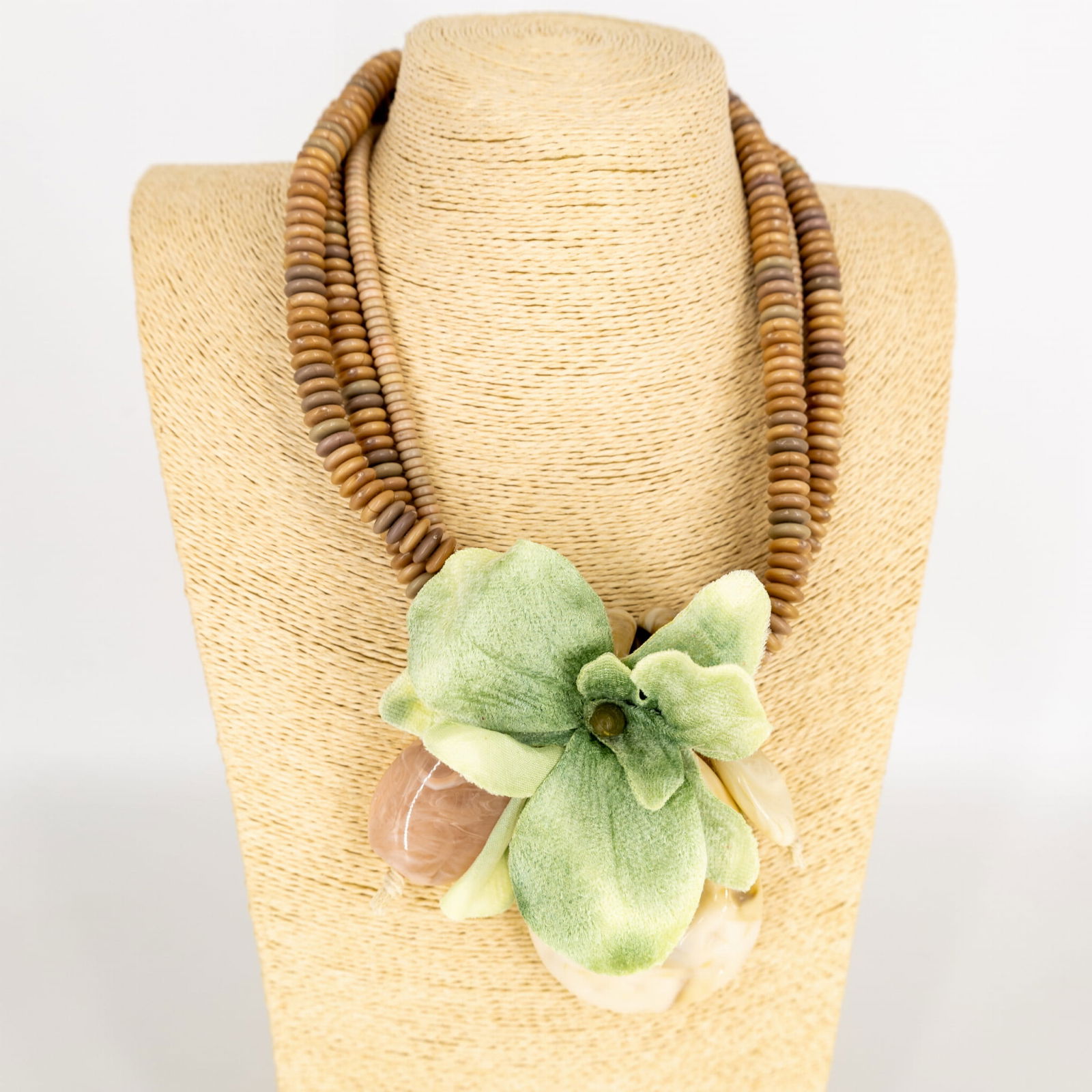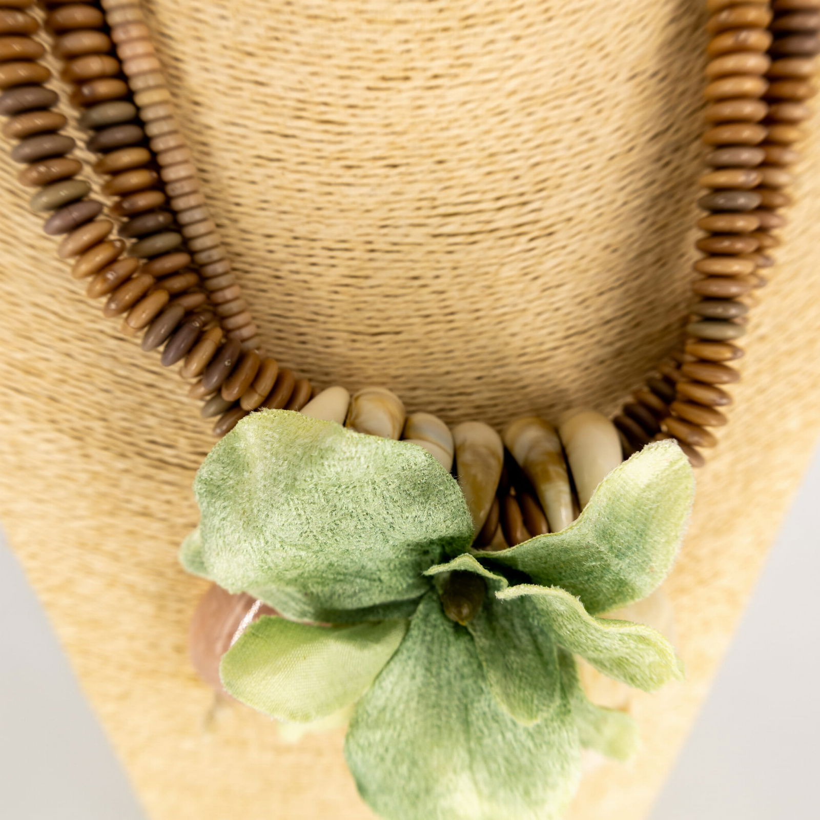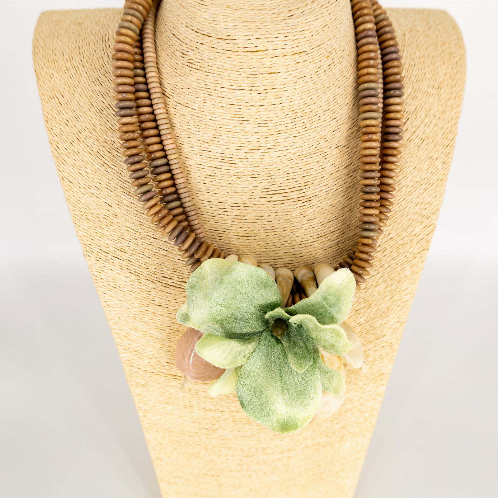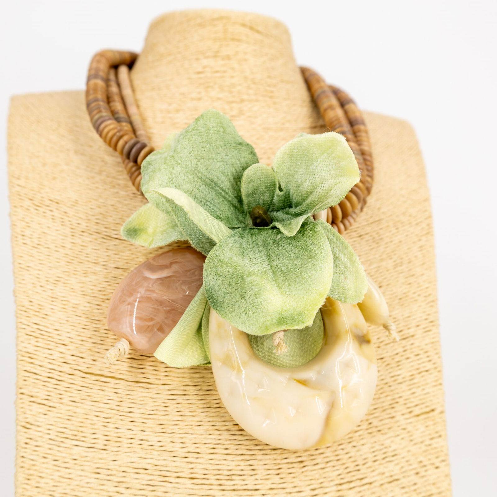 Shopika Colier statement bej cu floare verde menta in trei siruri – stil italian