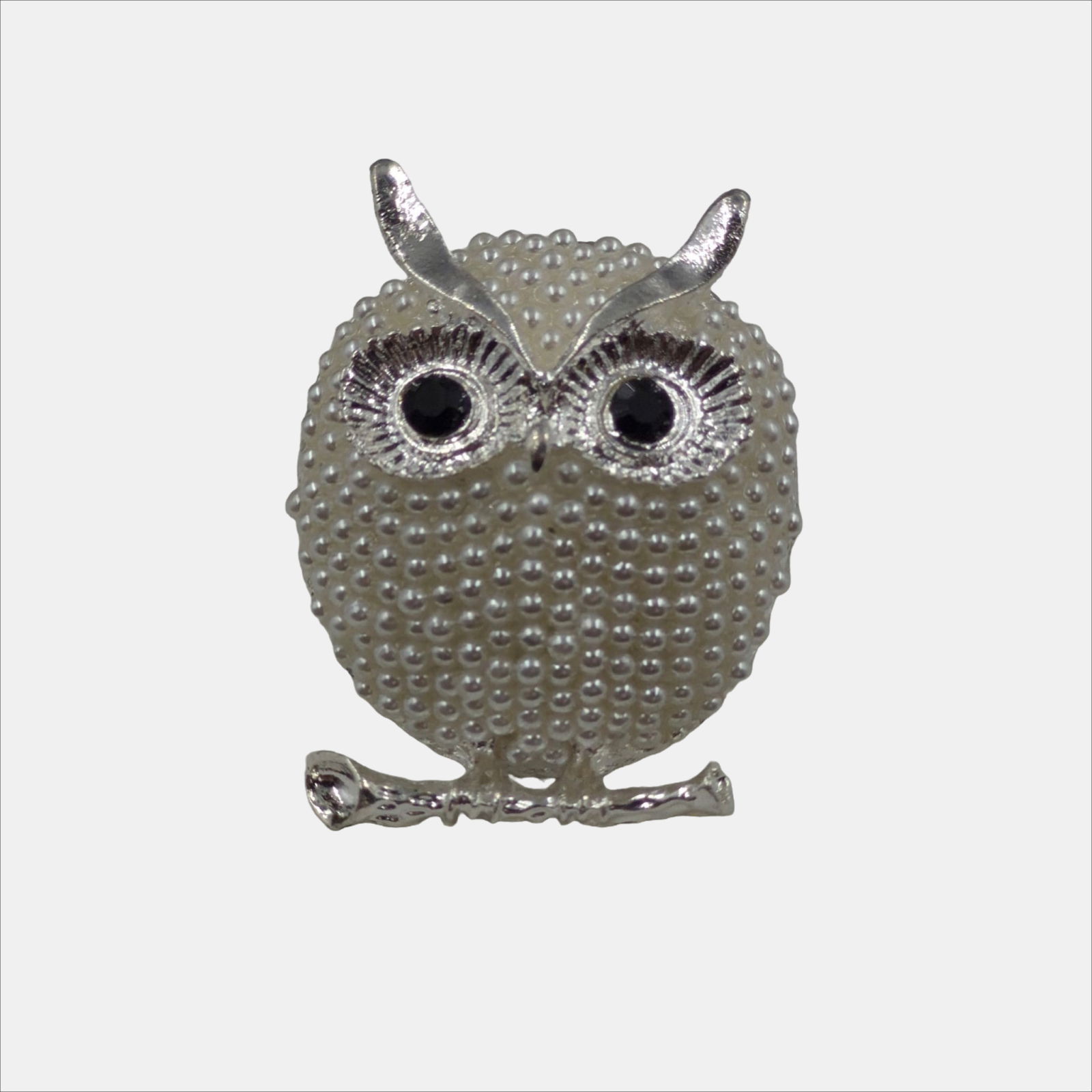 Aceasta brosa in forma de bufnita imbina farmecul jucaus cu eleganta discreta. Realizata din metal cu finisaj argintiu, piesa este decorata integral cu perlute artificiale, care ii confera textura, luminozitate si un aspect sofisticat.