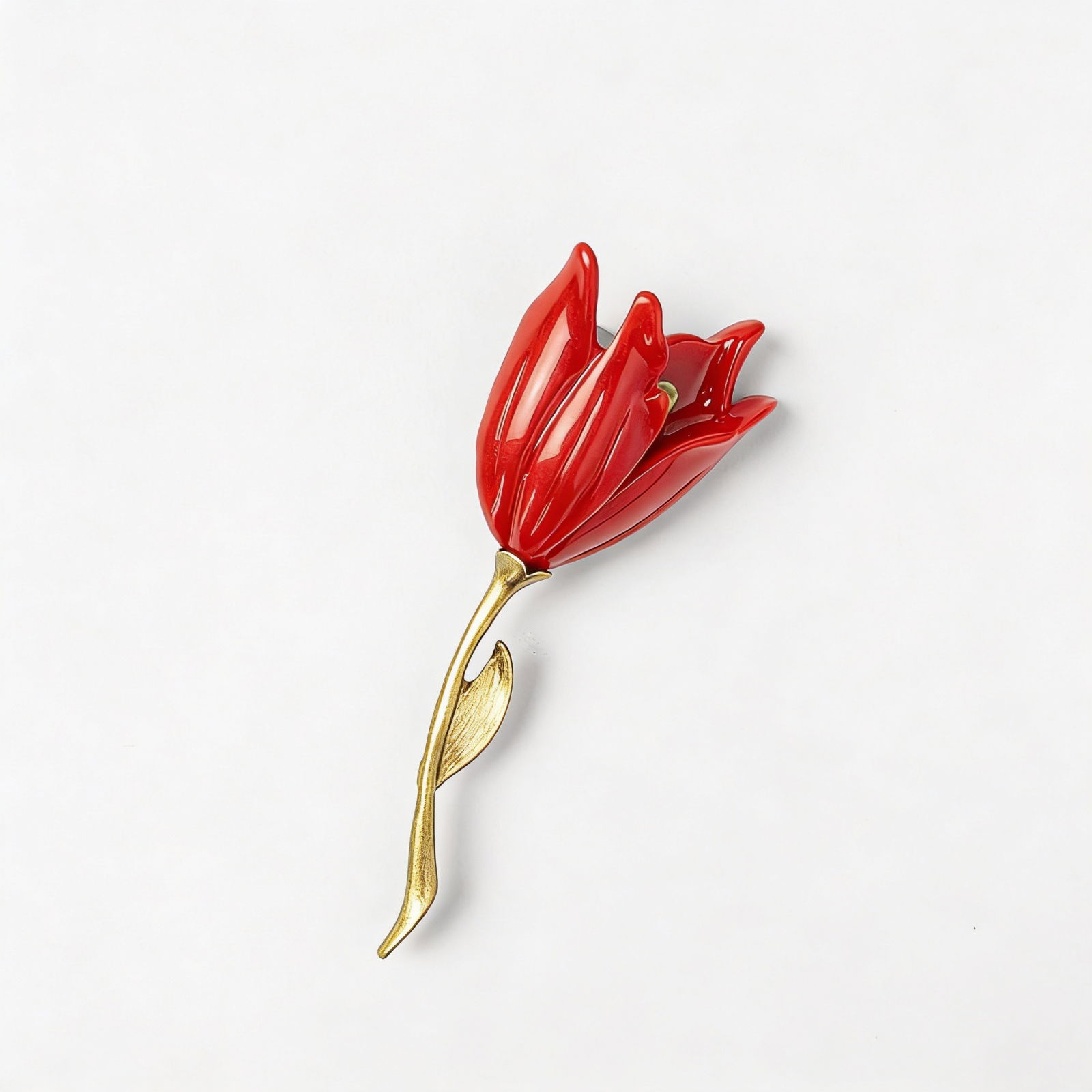 Shopika Brosa lalea rosie cu codita metalica aurie