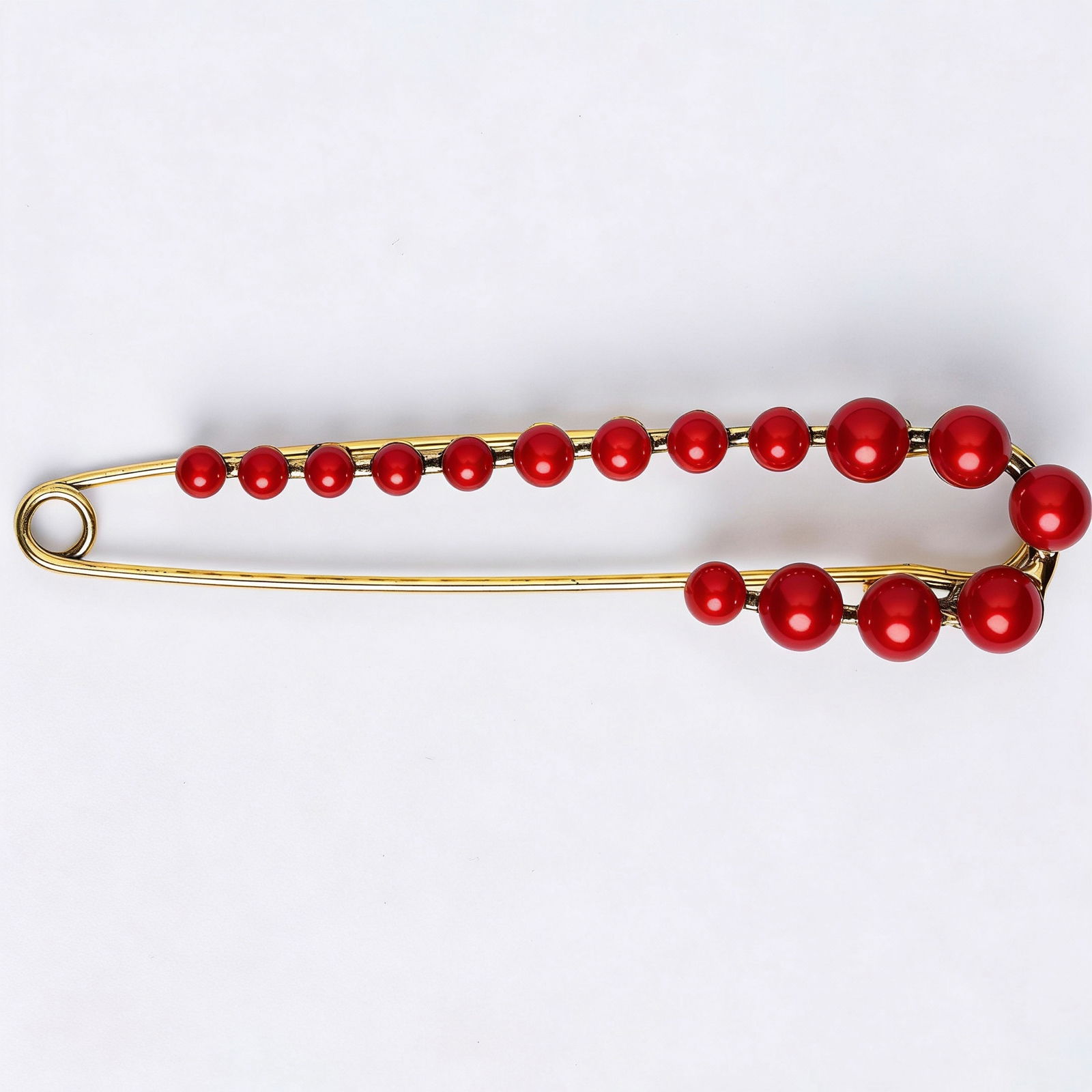 Shopika Brosa metalica aurie tip ac cu perle sintetice rosii