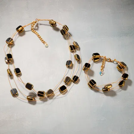 1. Un colier care impresioneaza prin delicatete si culoare, acest model imbina elegantele accente ale culorii cu detalii metalice aurii, toate asezate armonios pe fire subtiri si flexibile. Usor si placut de purtat, adauga o nota sofisticata chiar si celei mai simple tinute. Reflecta lumina discret si scoate in evidenta zona gatului, fiind alegerea ideala pentru rochii minimaliste, camasi fine sau tinute de seara unde vrei doar un strop de stralucire cu bun gust.