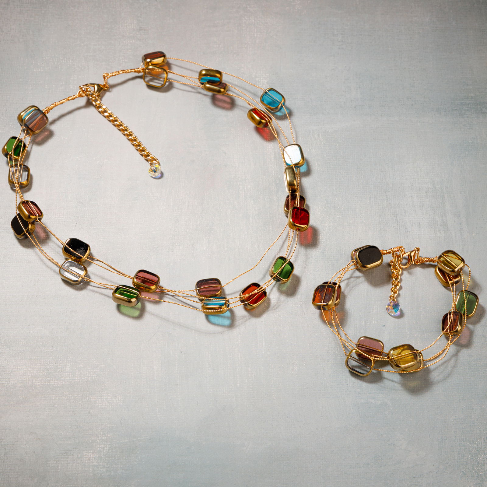 Pentru a forma set, puteti gasi colierul aici https://www.shopika.ro/colier-delicat-cu-elemente-multicolore-si-metalice-pe-fire-fine-aurii.html?preview=1