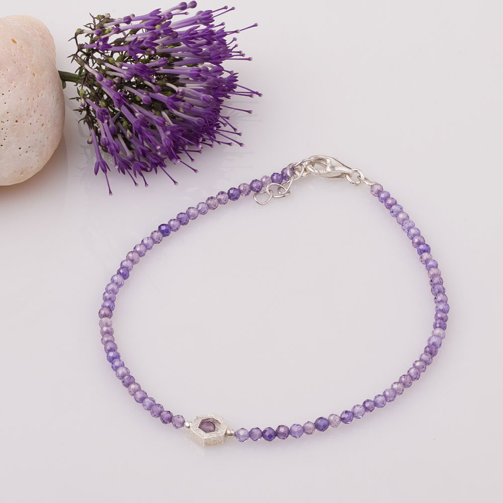 Bratara handmade cu pietre fatetate din cubic zirconia mov deschis de 1,5 mm.