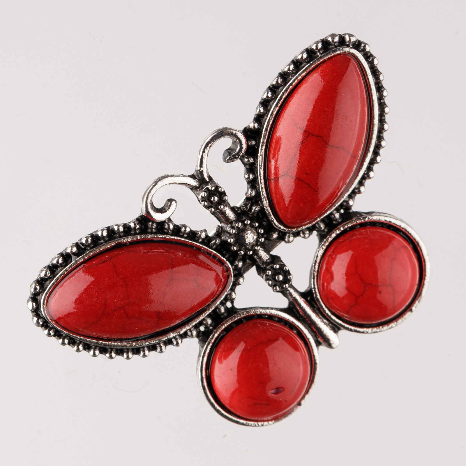 Shopika Brosa metalica argintie fluture cu pietre naturale din coral