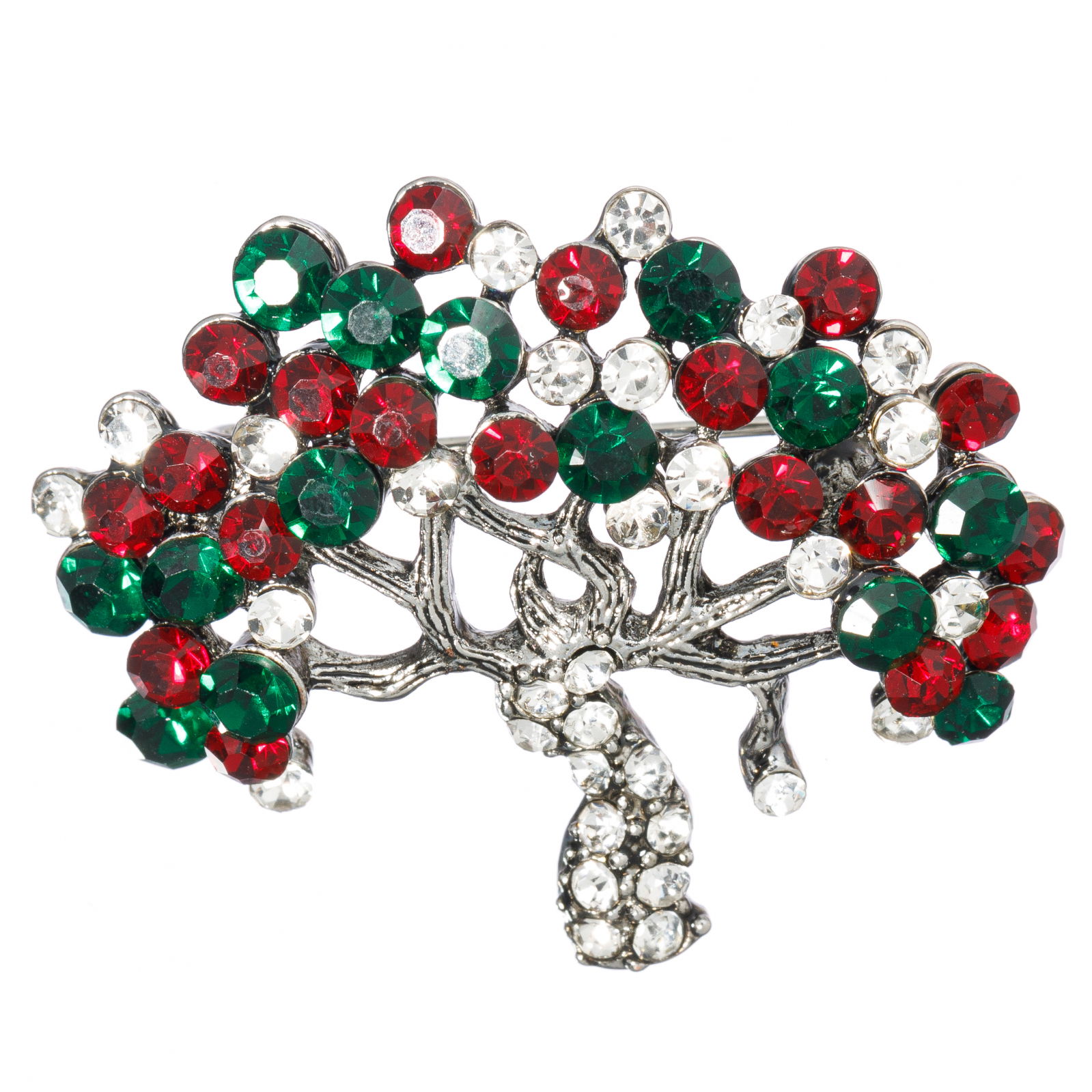 Shopika Brosa metalica argintiu Pomul Vietii cu pietricele verzi si rosii rubinii