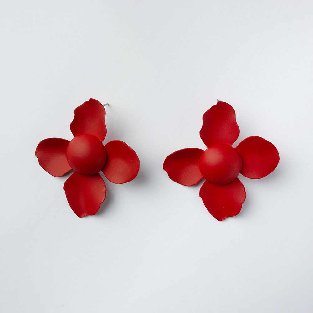 Shopika Cercei in forma de floare cu patru petale rosu mat