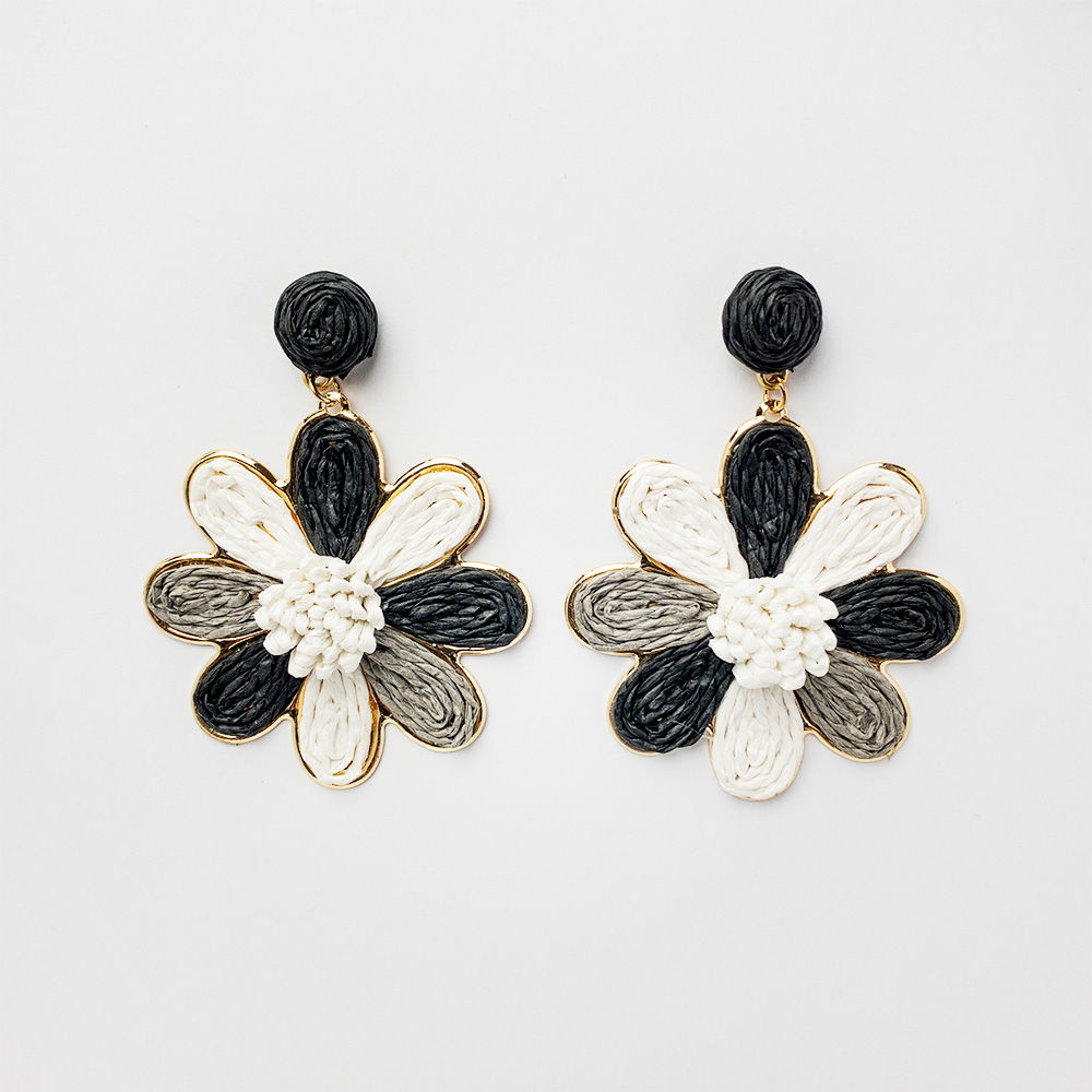 Shopika Cercei metalici aurii floare cu petale in nuante de alb, negru si gri