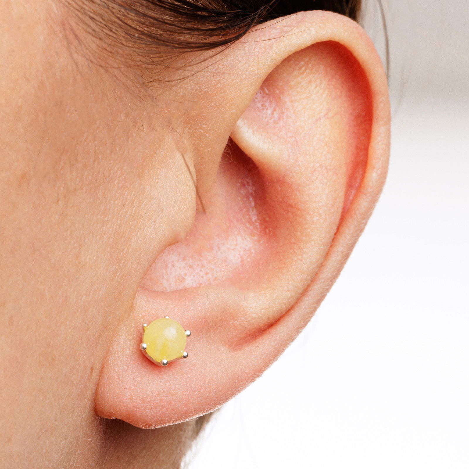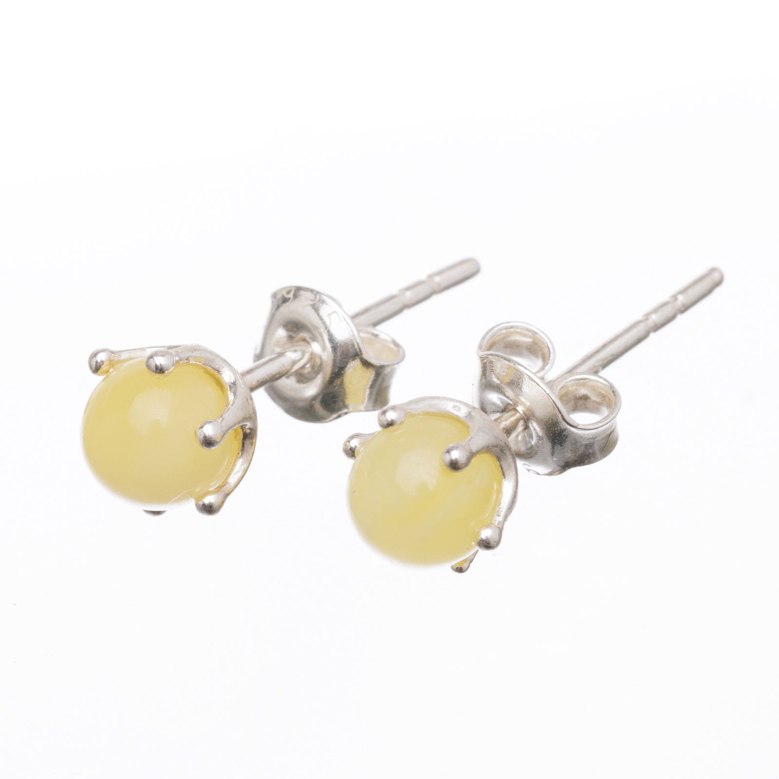 Shopika Cercei mici din argint 925 cu chihlimbar natural de culoare galben miere in montura