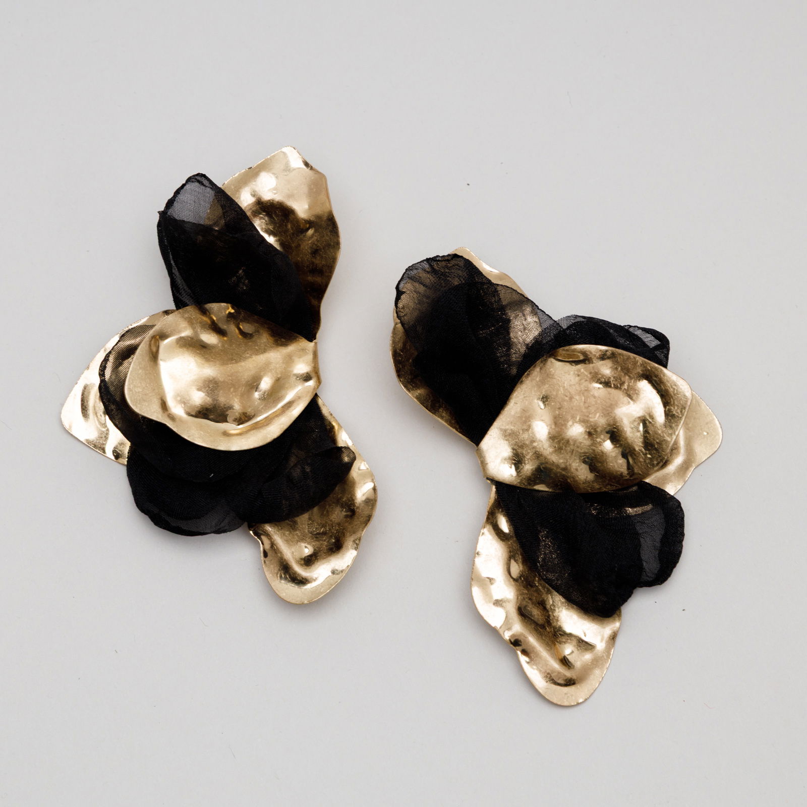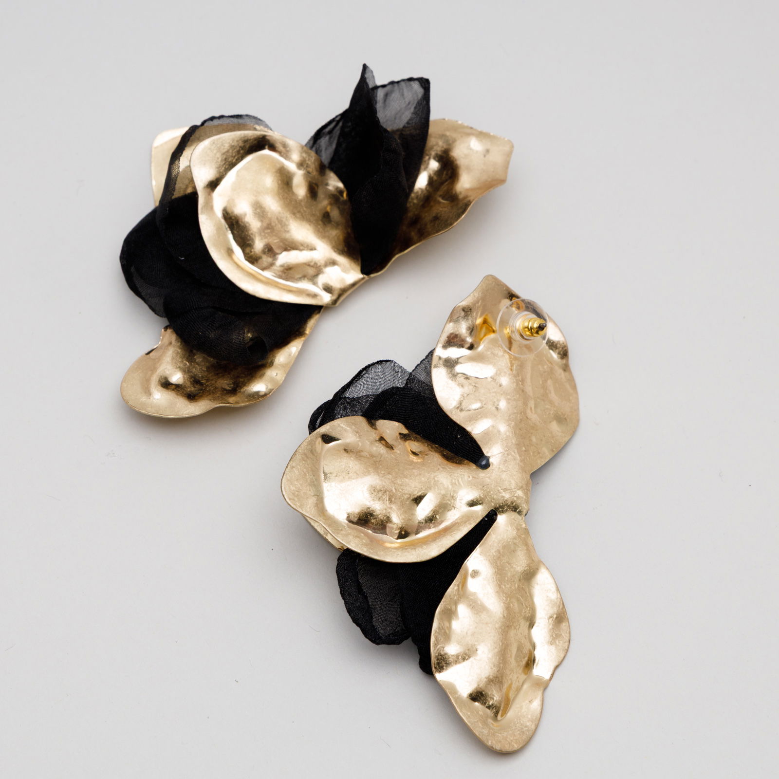 Shopika Cercei statement aurii cu petale texturate si voal negru