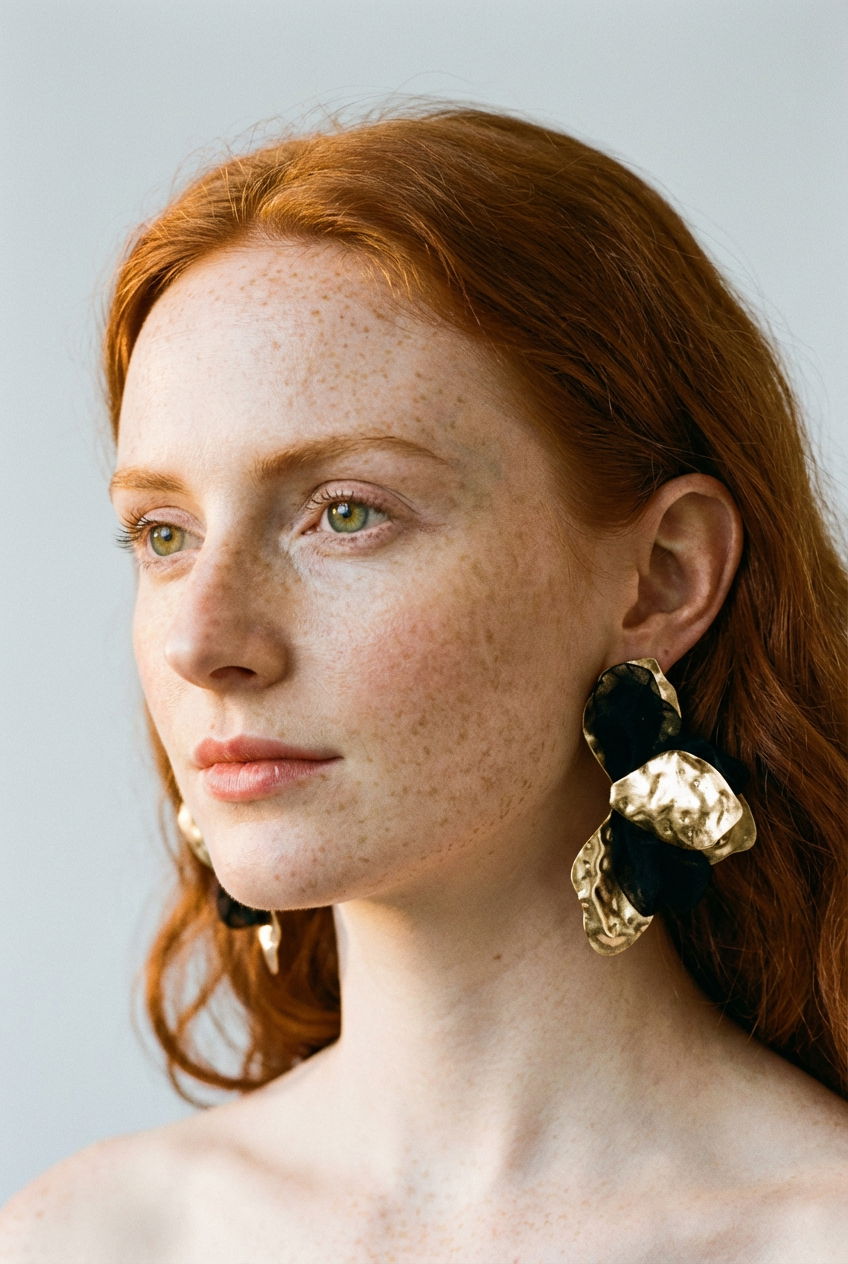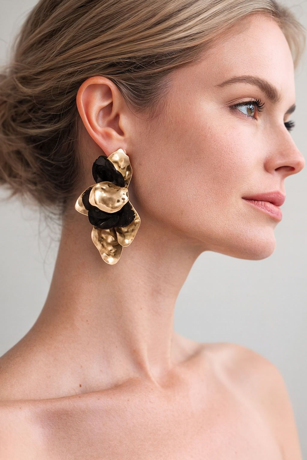 O piesa memorabila care lumineaza instant orice look. Cerceii aurii cu petale ample si voal negru aduc o energie artistica, moderna, transformand o tinuta simpla intr-o aparitie spectaculoasa. Jucause, fluide si ultra feminine, formele lor sculpturale pun in valoare trasaturile si adauga o nota sofisticata, ideala pentru seri speciale, evenimente, city nights sau poze de impact. Un accesoriu creat pentru femei care iubesc stilul, expresivitatea si detaliile unice.