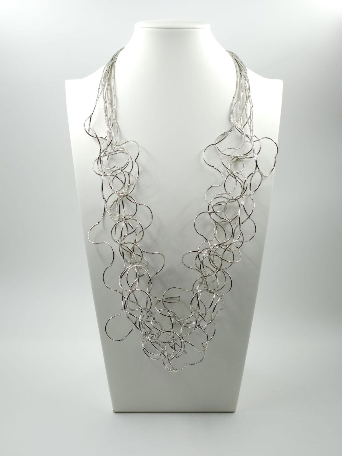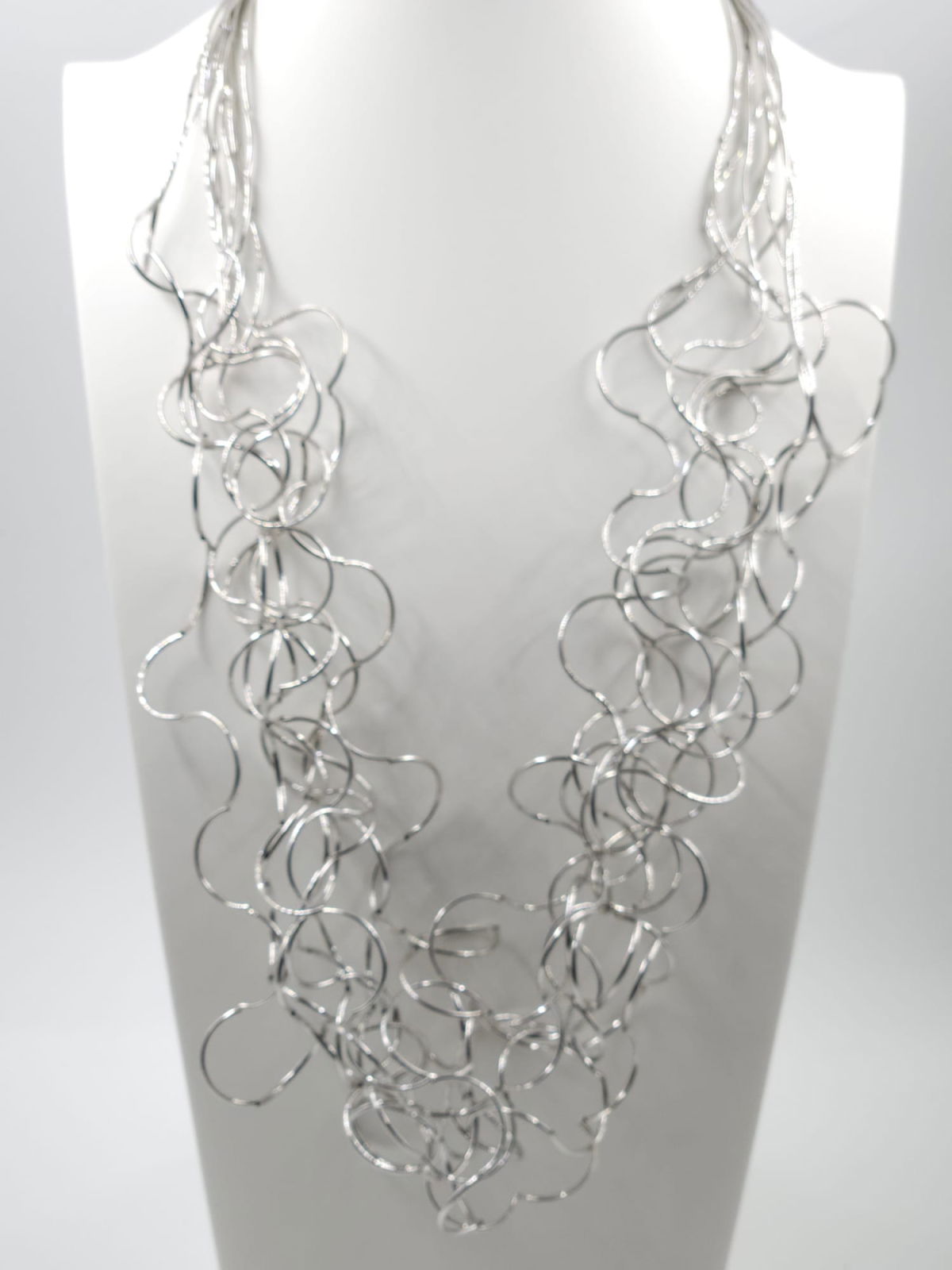 Shopika Colier lung statement din multe siruri, cu bucle in cascada, argintiu