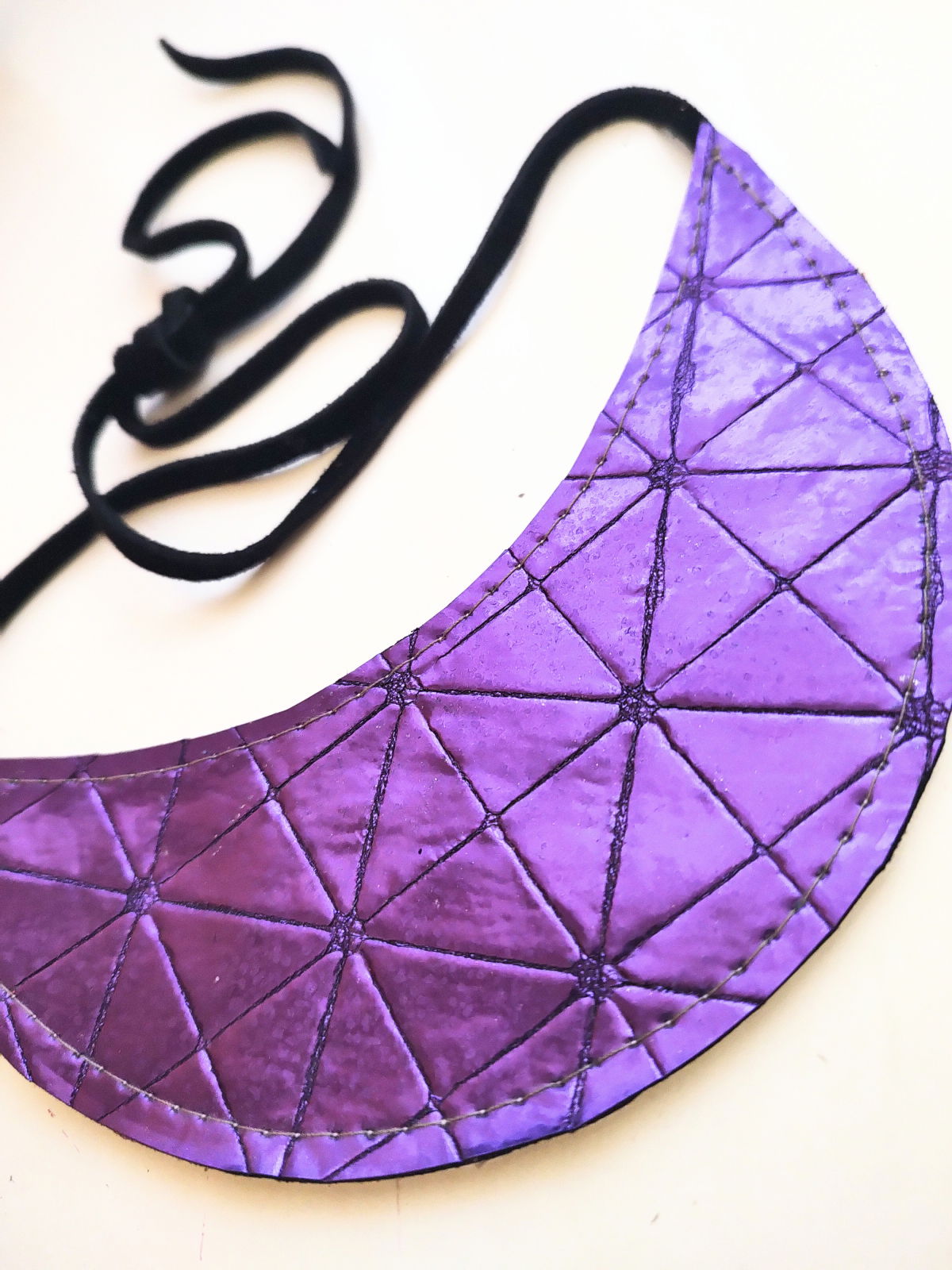 Shopika Colier mov statement din piele naturală, spirit festiv ,unicat