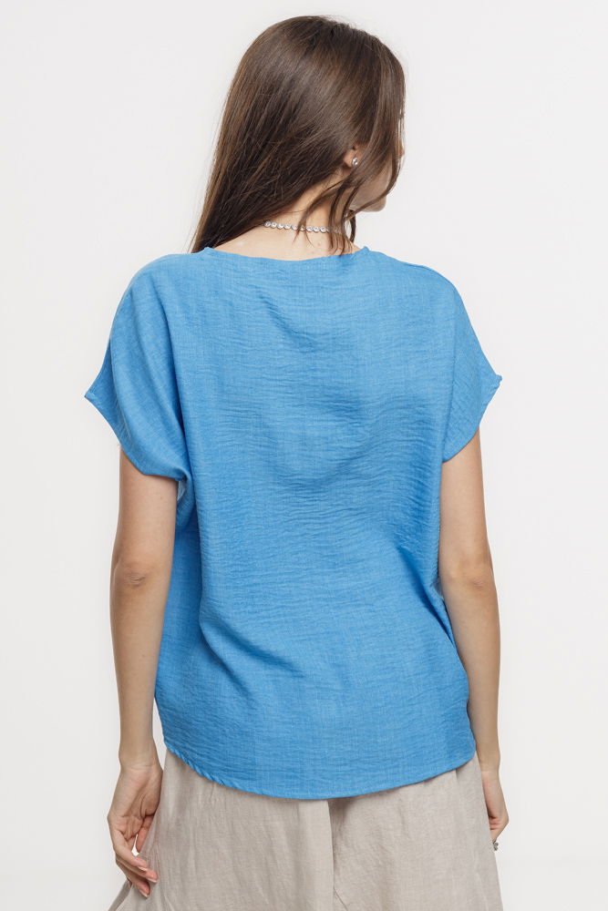Pierino Bluza albastra lejera din vascoza cu in, usor creponata, cu maneca cazuta scurta