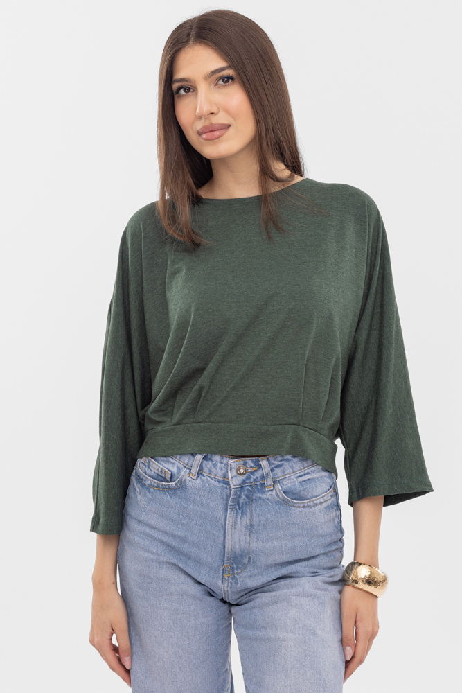 Pierino Bluza cu spate petrecut, si maneca fluture, din tricot de bumbac, kaki