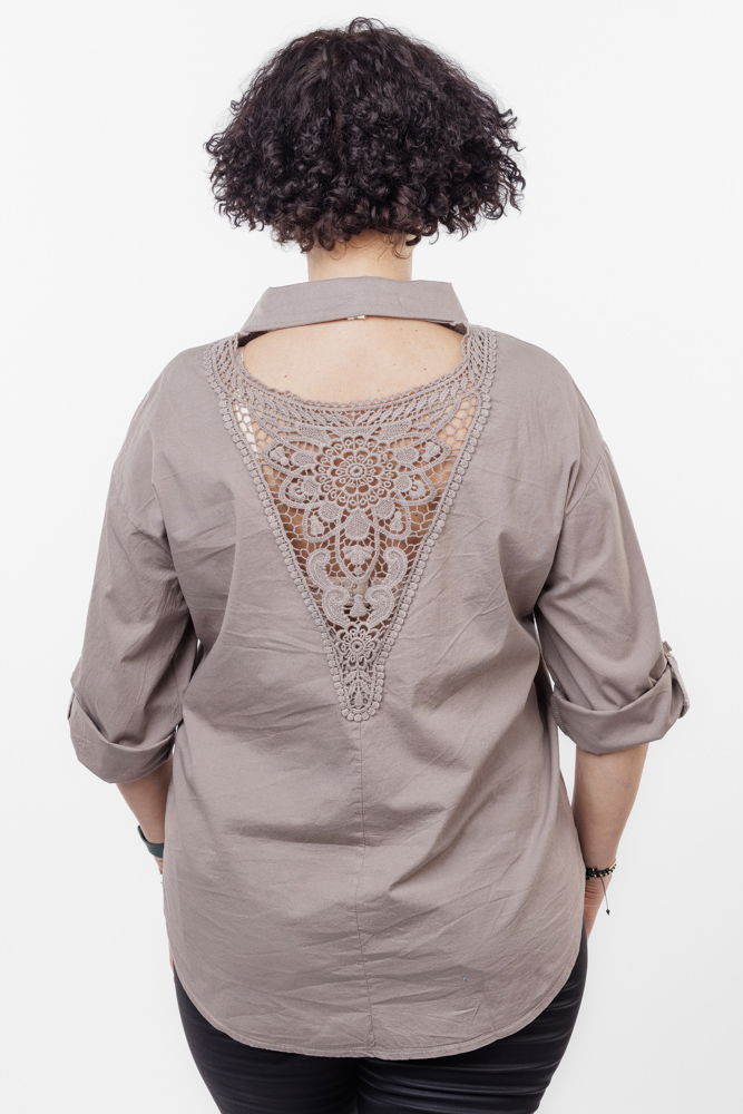 Shopika Camasa din poplin de bumbac cu dantela pe spate, bej inchis