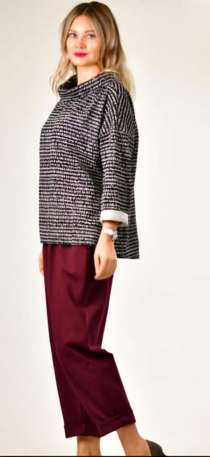 O piesa care imbina confortul cu estetica moderna: bluza negru-bej cu textura grafica subtila, ce creeaza un efect vizual artistic si rafinat. Materialul texturat ofera personalitate fara sa incarce, iar croiul lejer se aseaza natural pe corp, fiind ideal pentru tinute in care vrei sa arati bine fara efort.