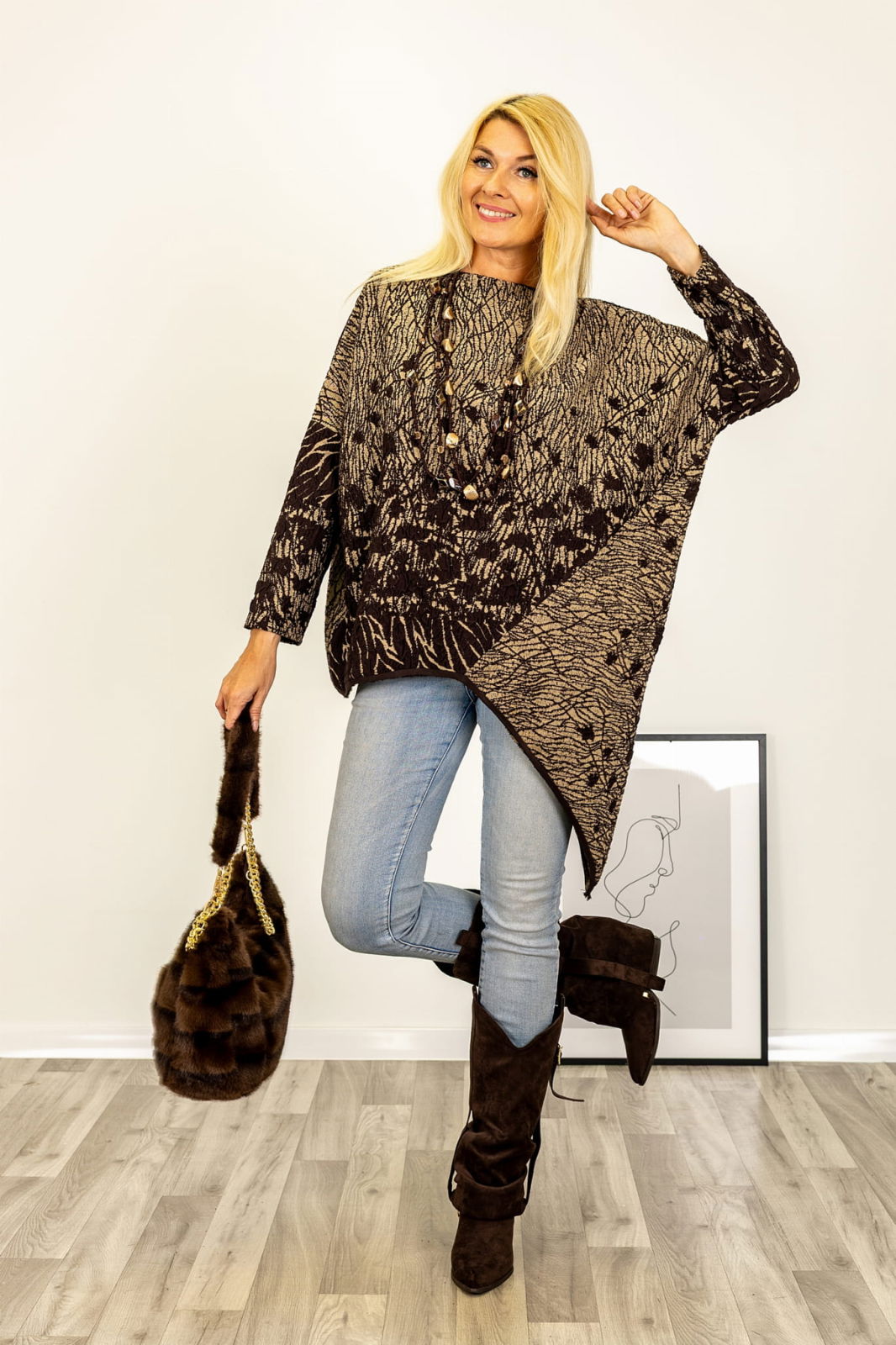 Bluza asimetrica cu croi lejer. Materialul moale si fin ofera confort, iar designul modern adauga o nota rafinata tinutelor casual sau elegante. Poate fi purtata cu pantaloni, colanti sau fuste, pentru un look feminin si original.