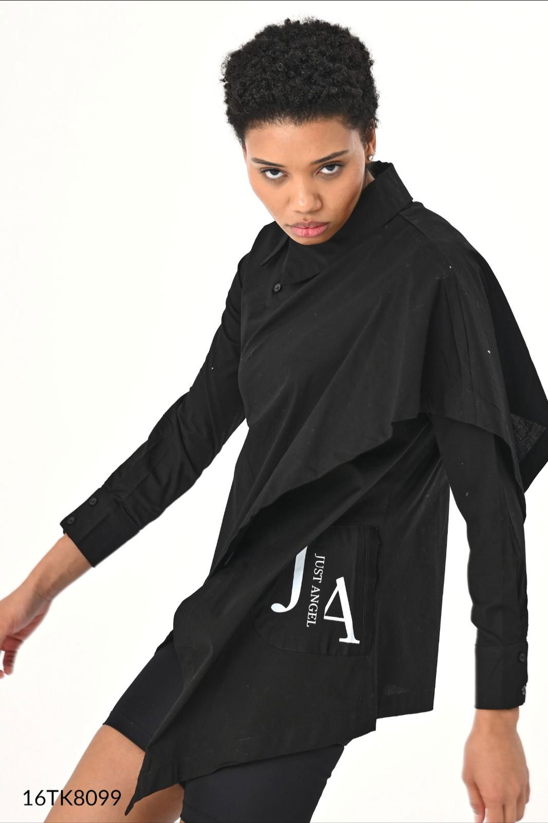 Datorită croielii sale inovatoare poate fi purtată atât cu fuste, cât și cu pantaloni, ceea ce o face foarte versatilă și modernă.