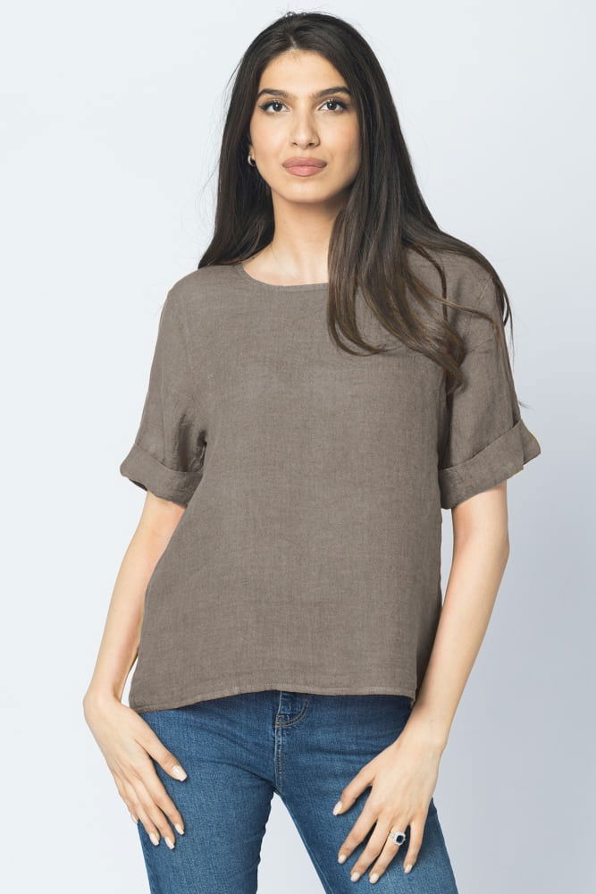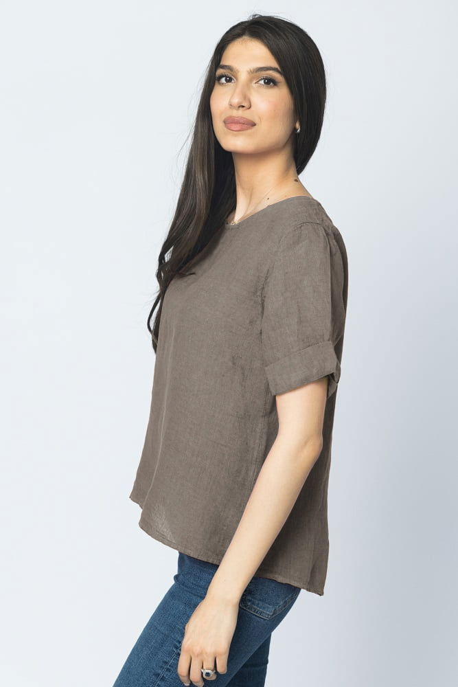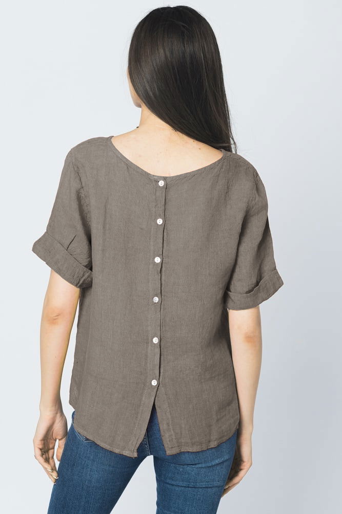 Shopika Bluza din in bej inchis cu nasturi pe spate