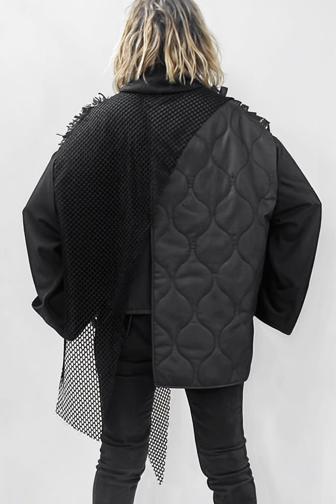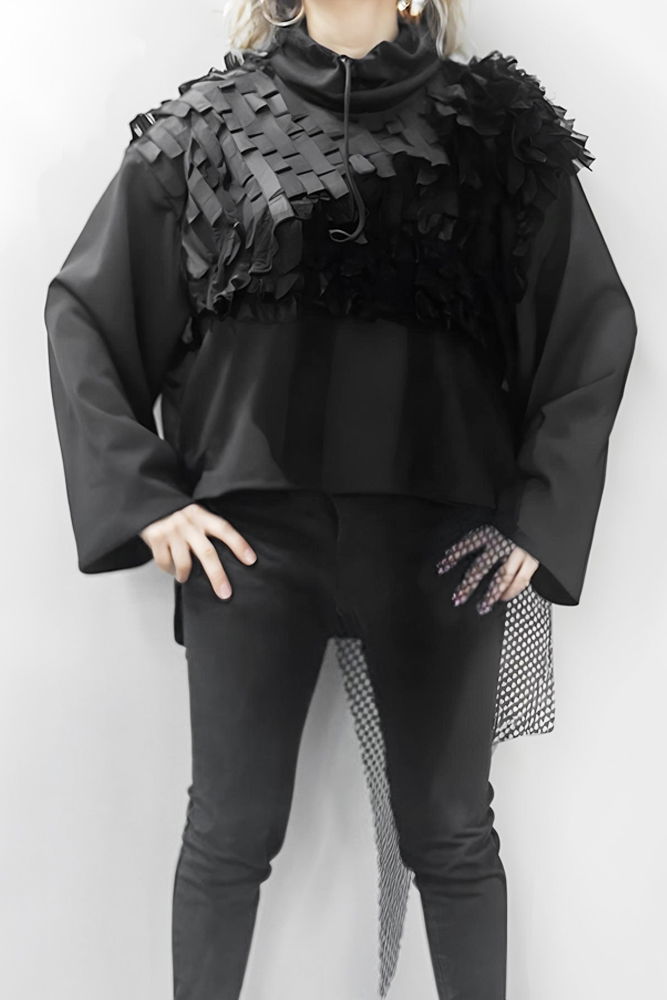 H-4 Bluza neagra oversize, compusa din materiale diferite cu guler inalt